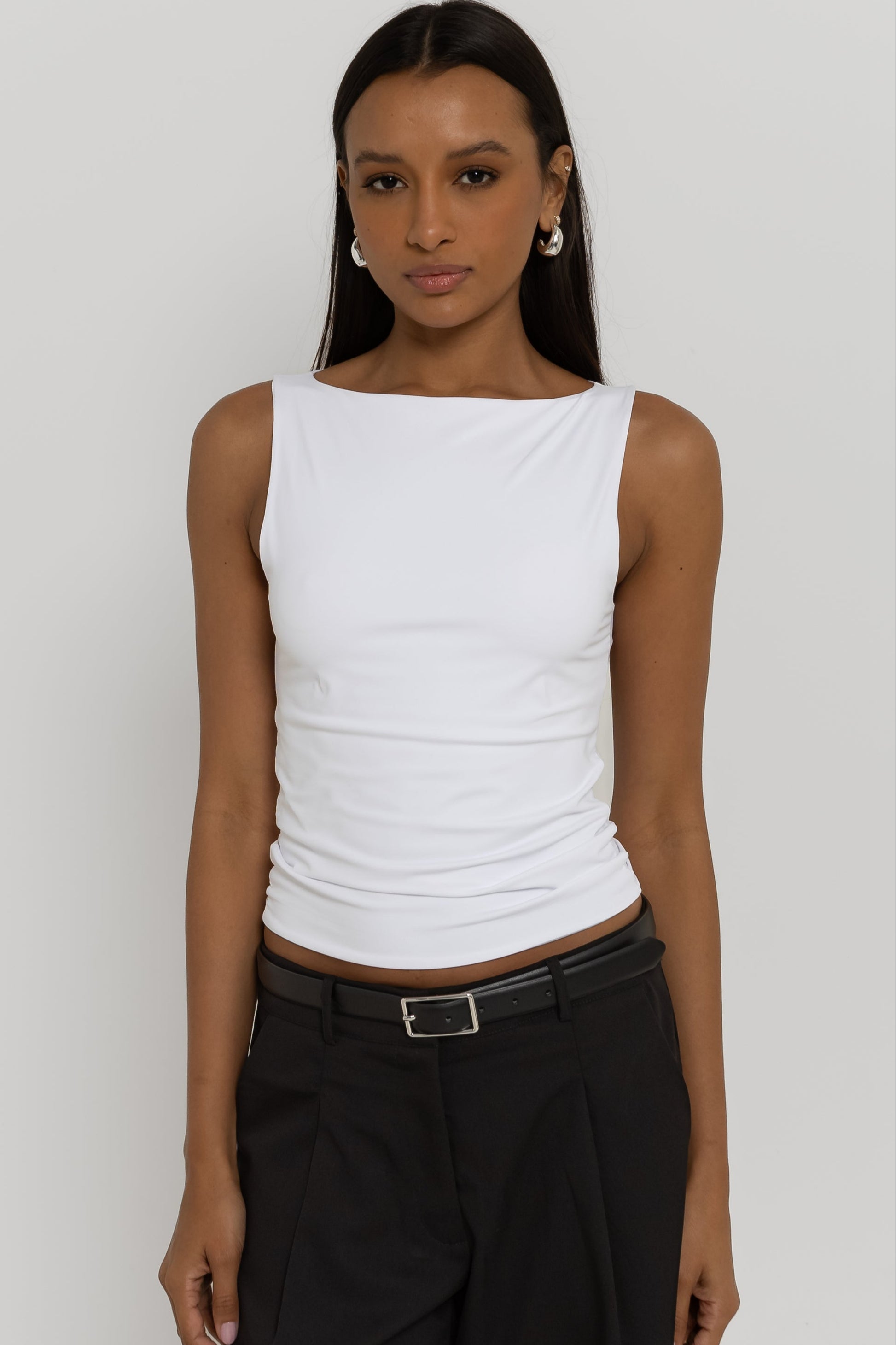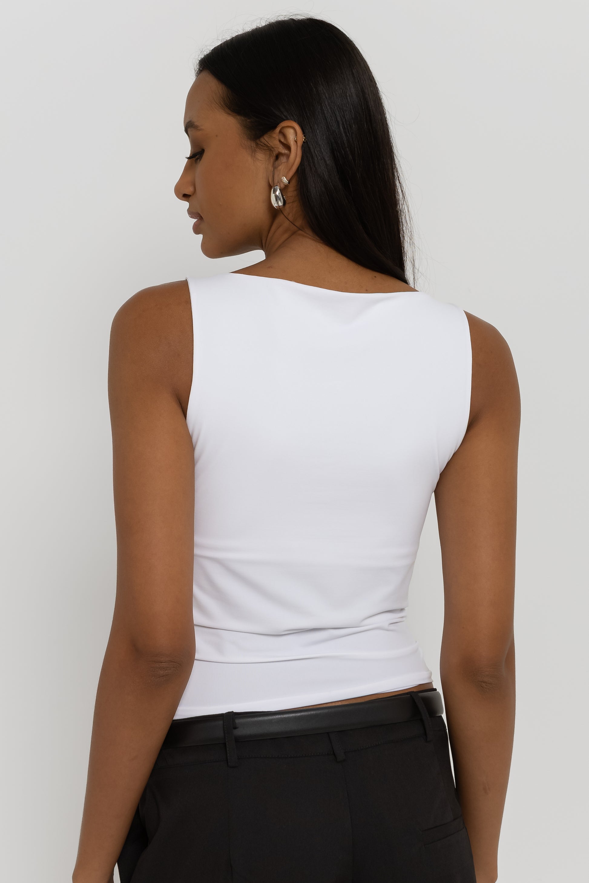Básica com estilo. Confeccionada em malha macia de poliamida, a Blusa Bianca possui shape sem mangas com gola canoa que valoriza o colo trazendo um ar sofisticado. A frente dupla de tecido garante conforto e sustentação, além de evitar qualquer marcação ou transparência.