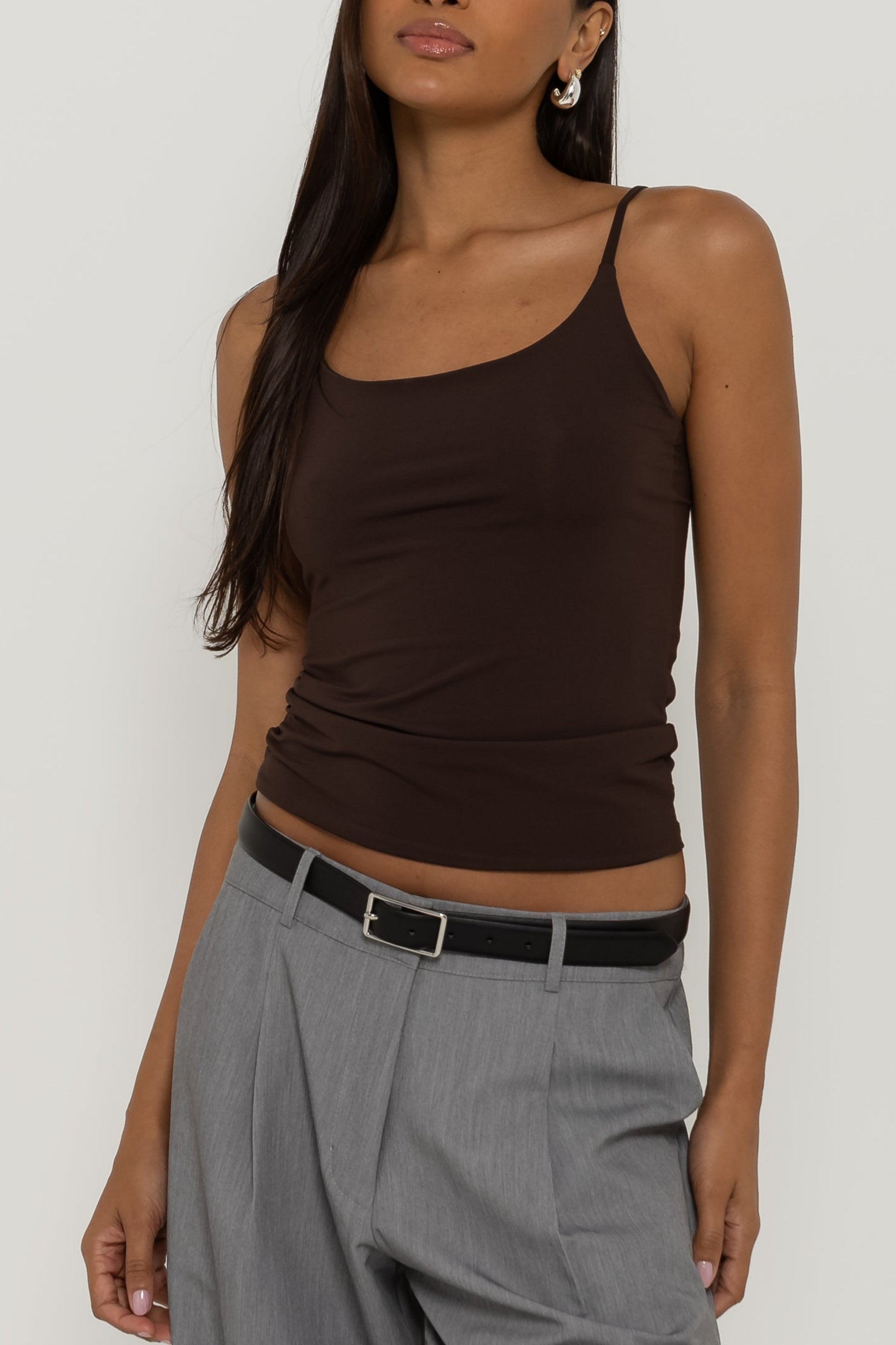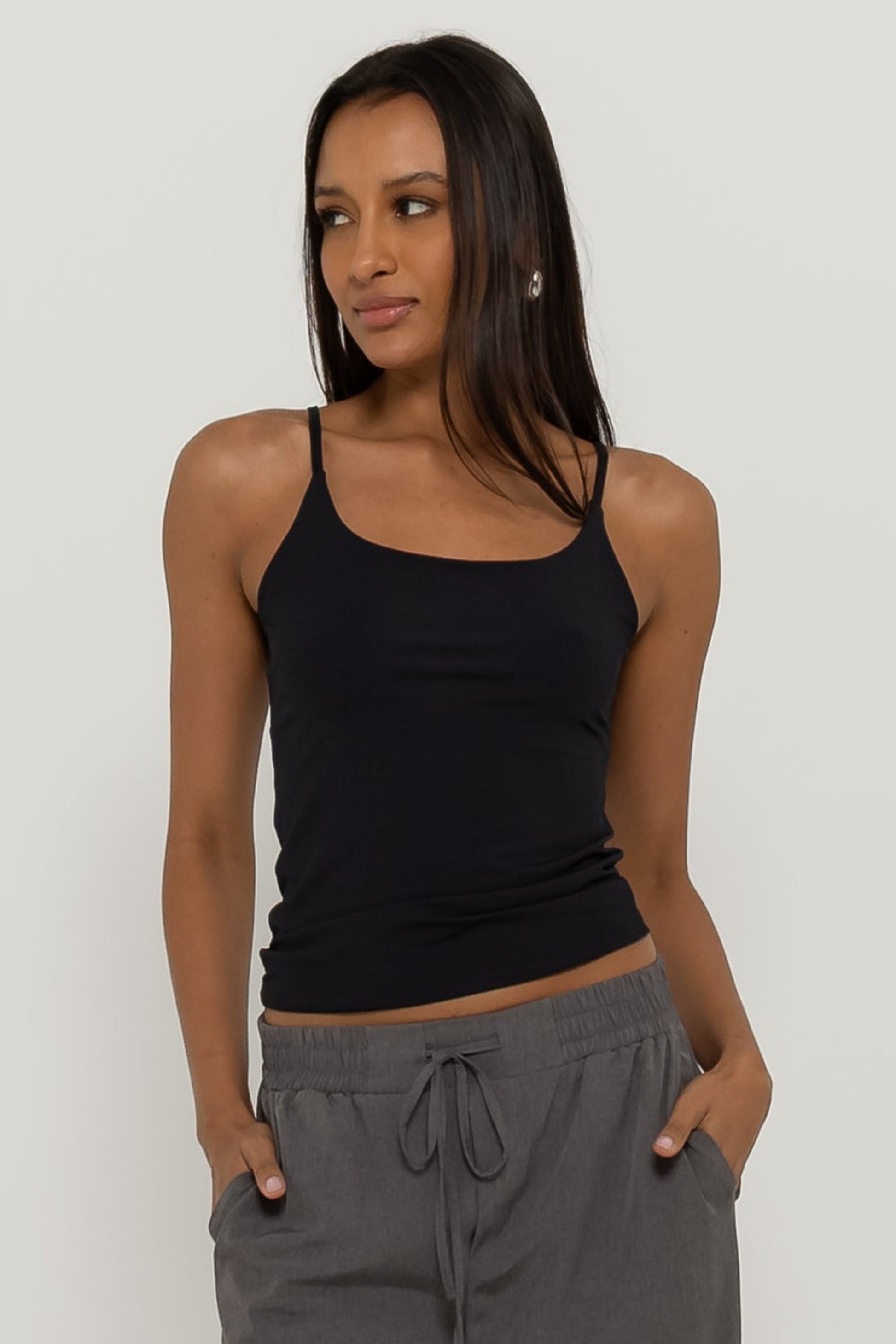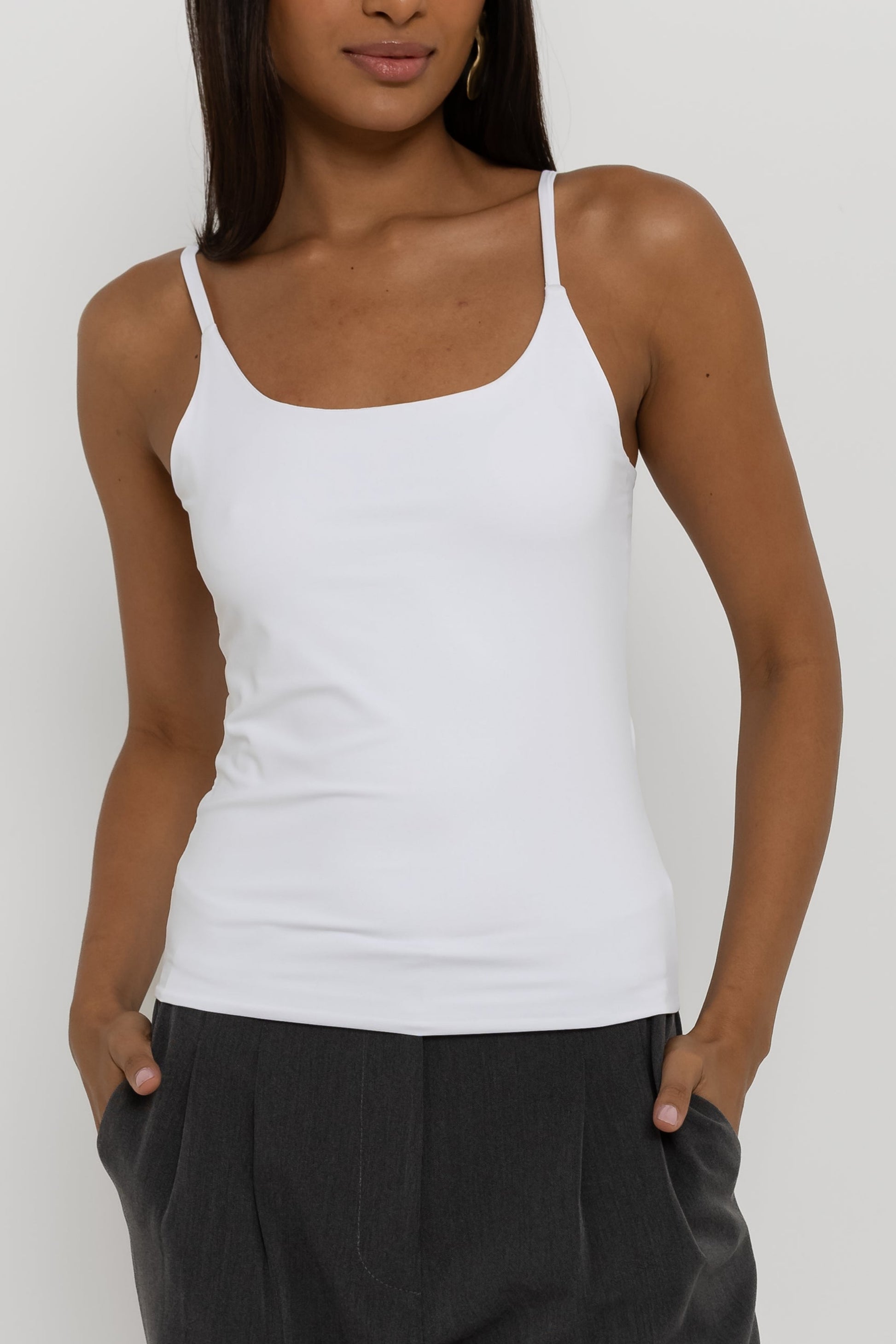 Sua regata coringa de todos os dias. Feita em malha macia de poliamida, a Regata Ibiza possui shape ajustado ao corpo, frente inteiramente dupla para manter o conforto e evitar qualquer marcação ou transparência, além das alças finas que deixam a peça ainda mais delicada.