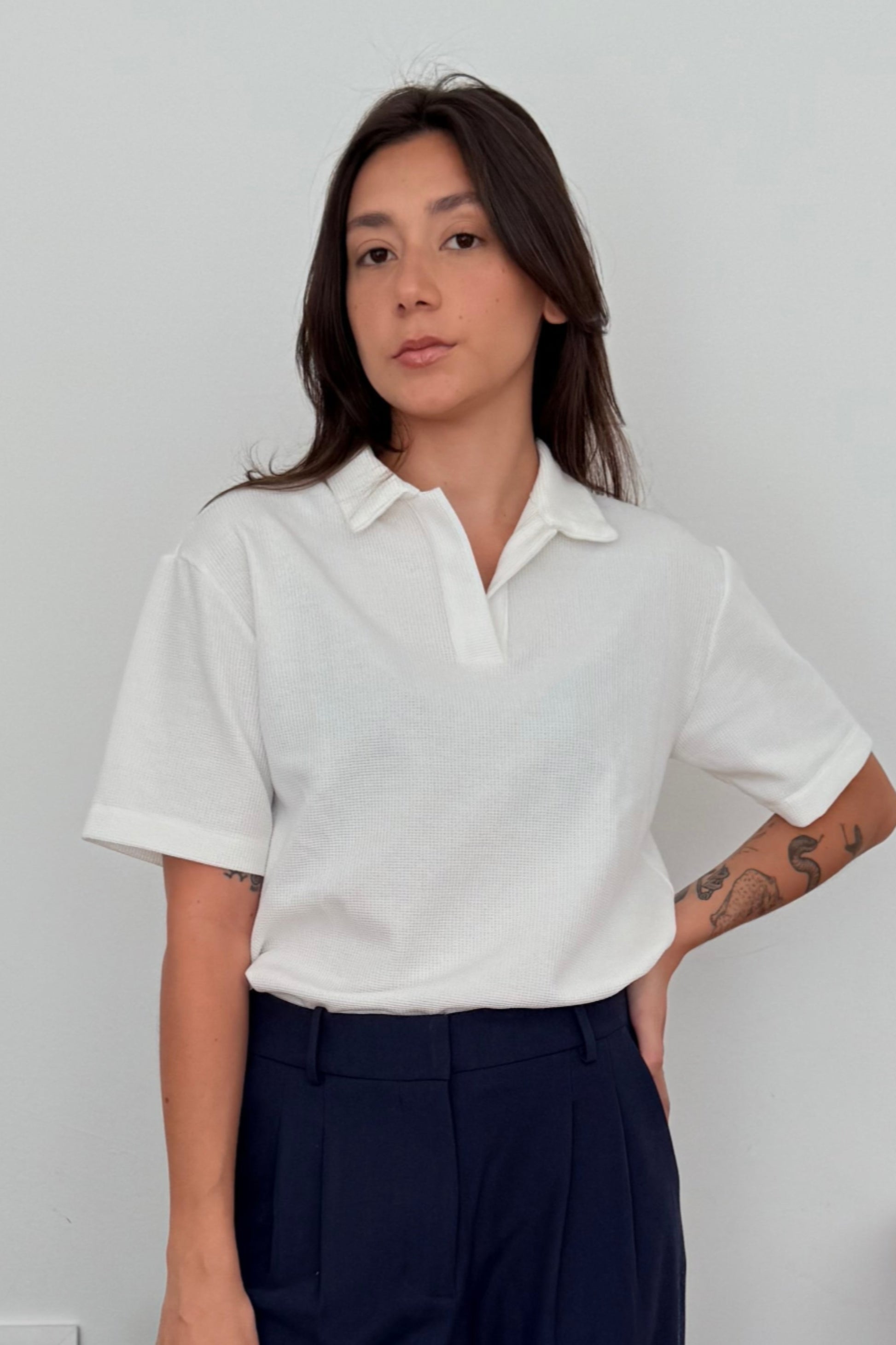 Do sportwear ao look de todos os dias. Confeccionada em tecido de malha macia com textura, a Blusa Polo Paola possui shape levemente oversized, com cava deslocada que garante mais conforto ao modelo, além do charme da gola polo que a gente ama!