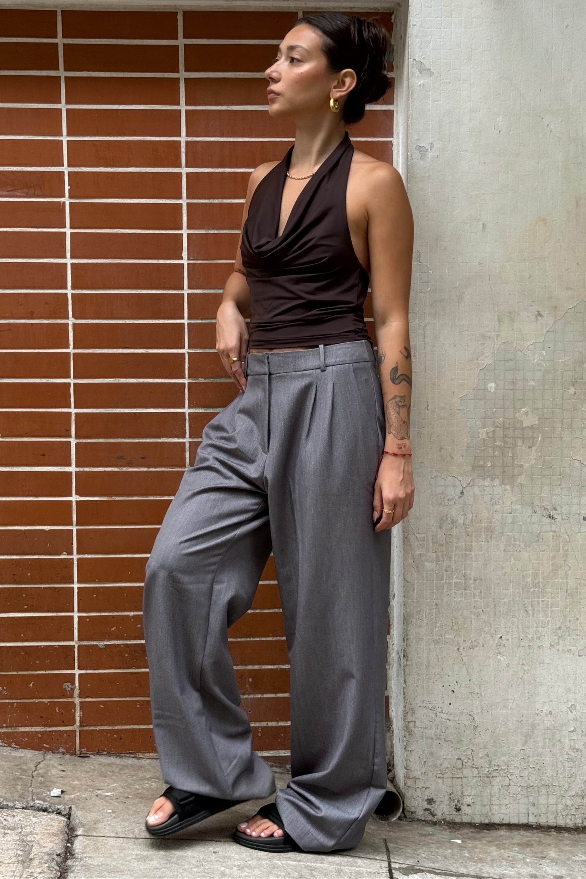Para amantes de cintura alta! Confeccionada em tecido encorpado de alfaiataria, a Calça Diana possui cintura alta, shape wideleg, bolsos faca laterais, detalhe de pregas duplas que traz um toque de sofisticação, e fechamento com dois colchetes para garantir ainda mais segurança e conforto. Para te acompanhar no seu dia a dia e em todos os seus compromissos!