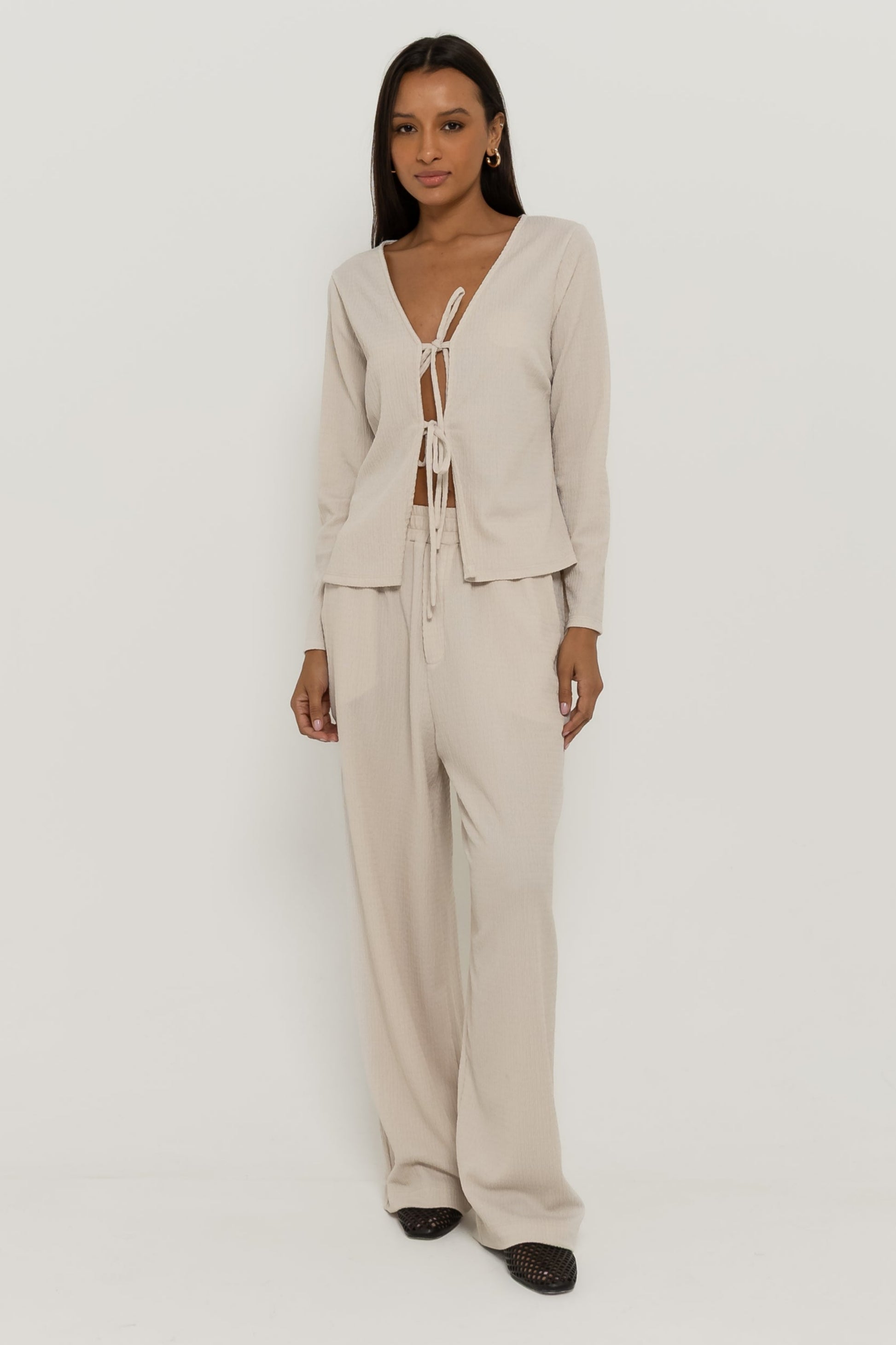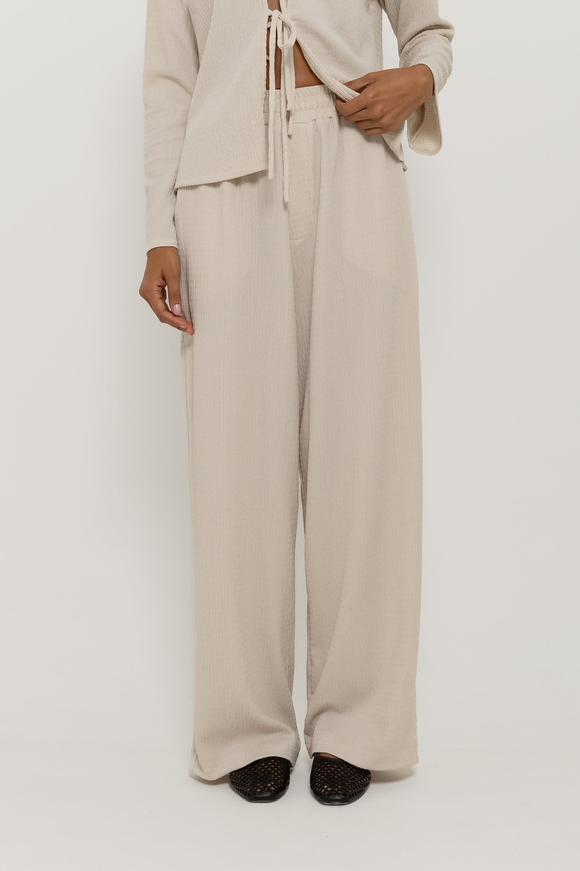 Comfy, but make it fashion! Esta calça é feita em tecido de malha texturizada de ótimo toque e caimento, elevando qualquer look a um novo patamar. Com um shape wide leg oversized, ela apresenta um elástico na cintura, oferecendo conforto e praticidade. Os bolsos faca frontais e dois bolsos funcionais traseiros adicionam um toque funcional e estiloso, tornando-a ideal tanto para looks casuais quanto para produções mais despojadas.