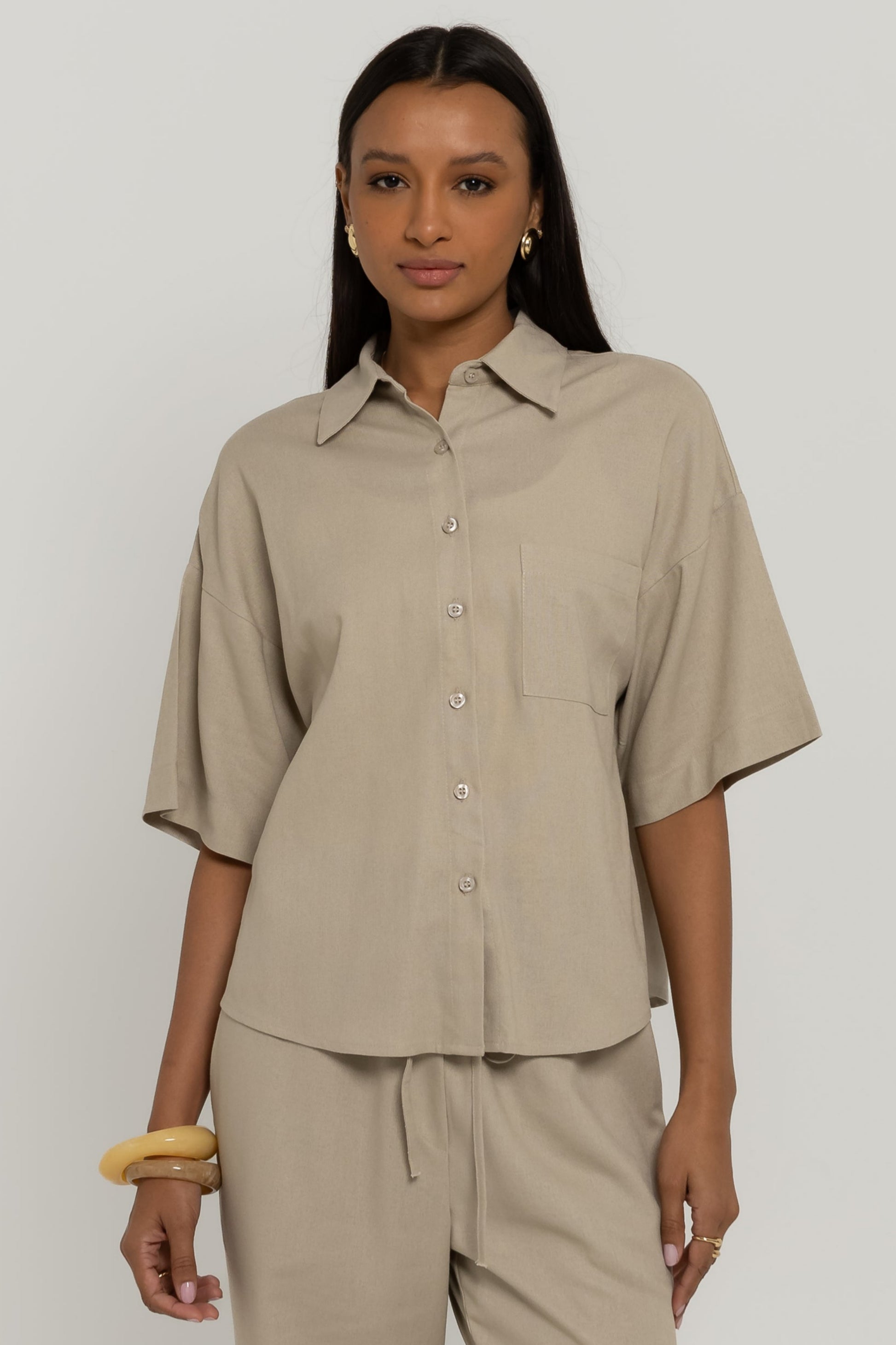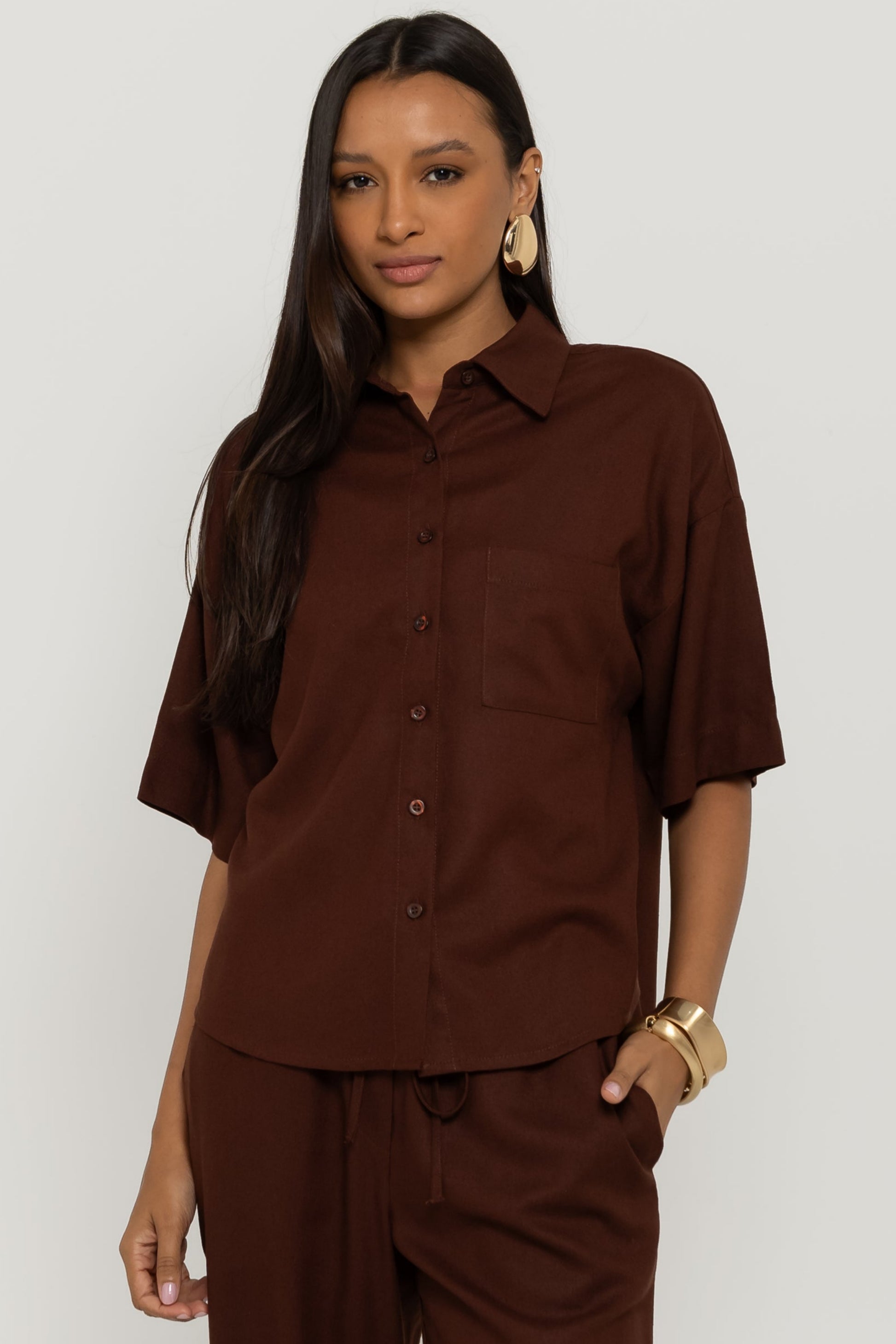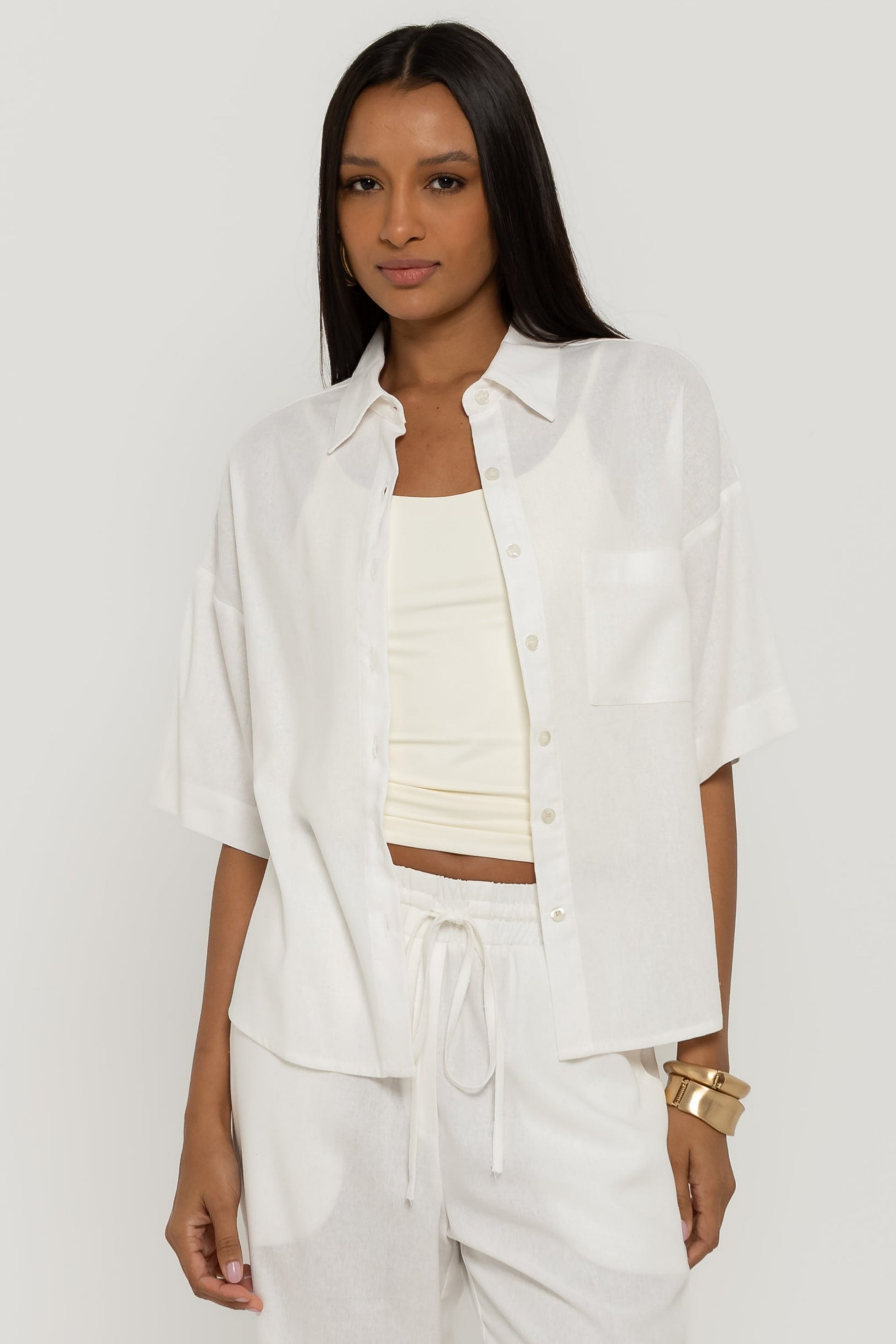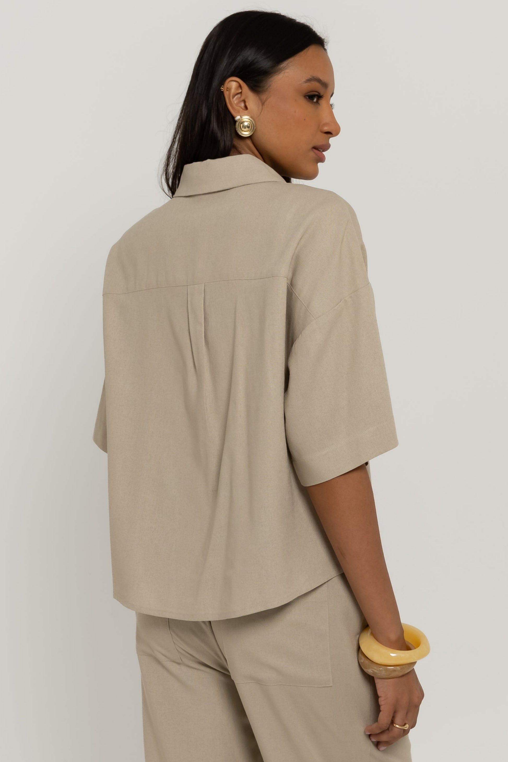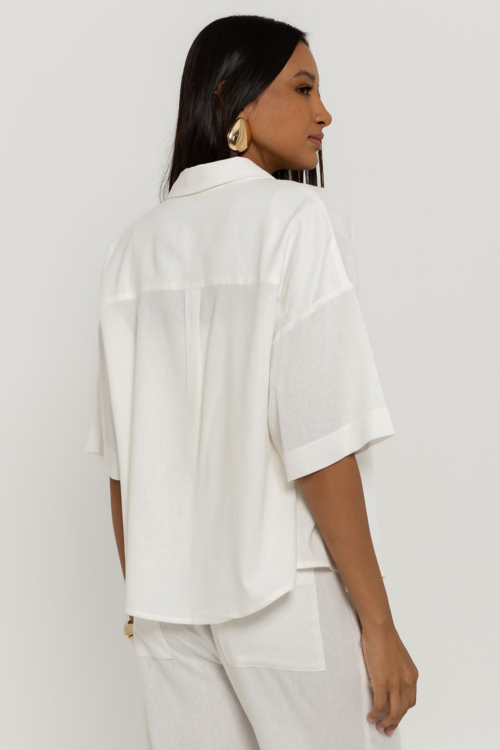 Elegante na medida. Confeccionada em tecido macio de linho misto, a Camisa Luara possui shape levemente amplo, com comprimento médio, mangas curtas, bolso unitário e prega nas costas. Vai da praia ao casual, dependendo da proposta desejada e forma um lindo conjunto com a nossa Calça Paula.