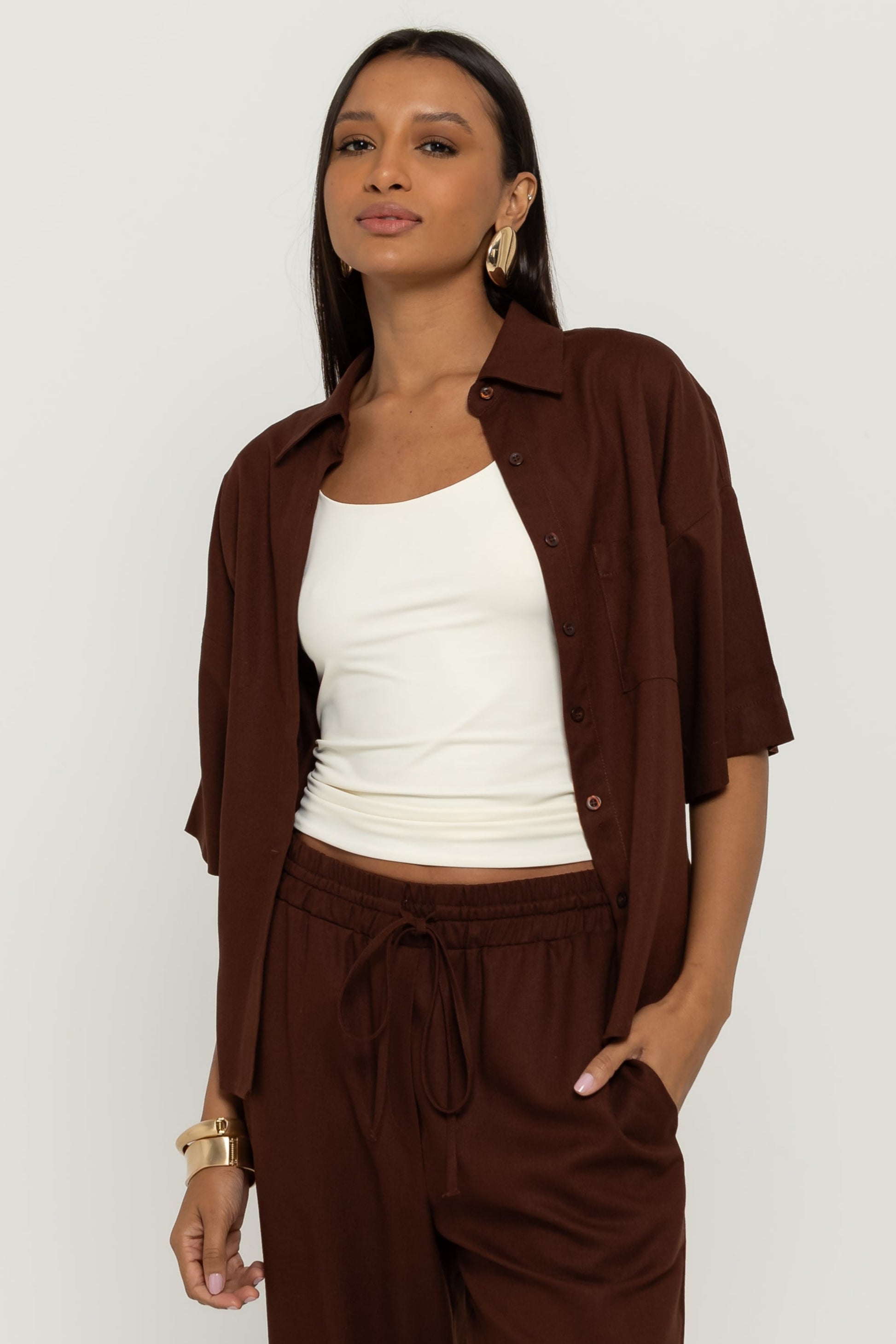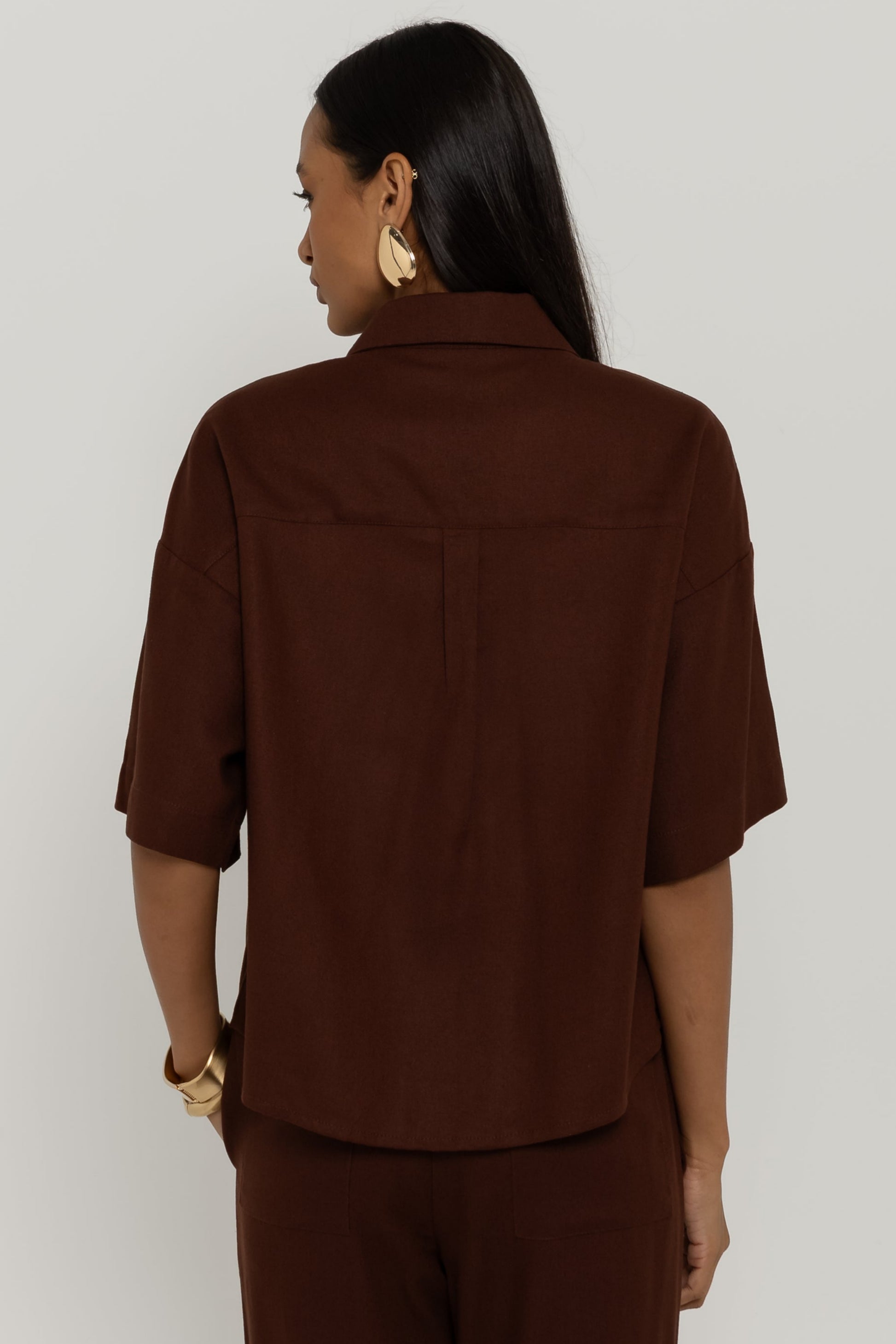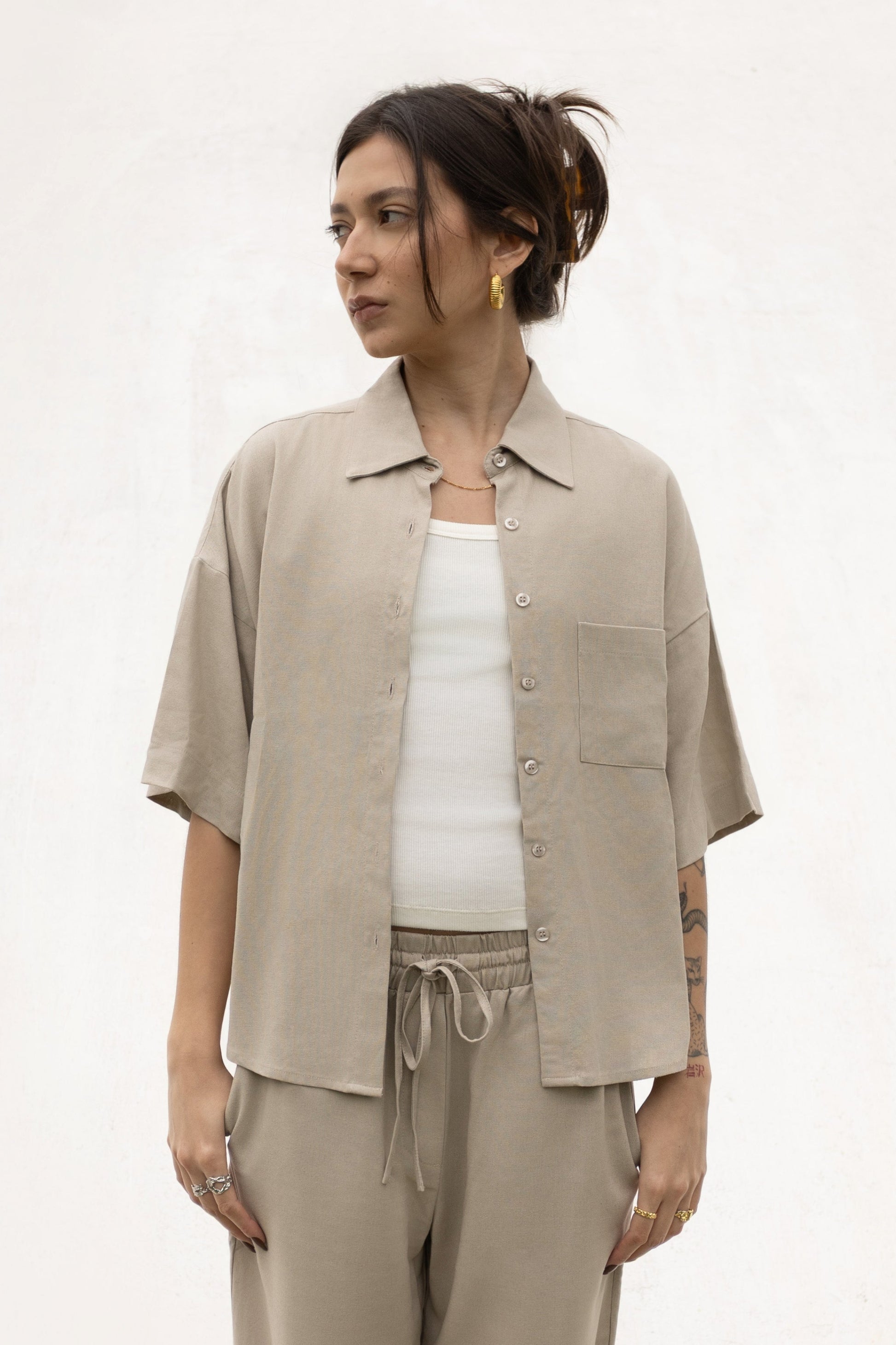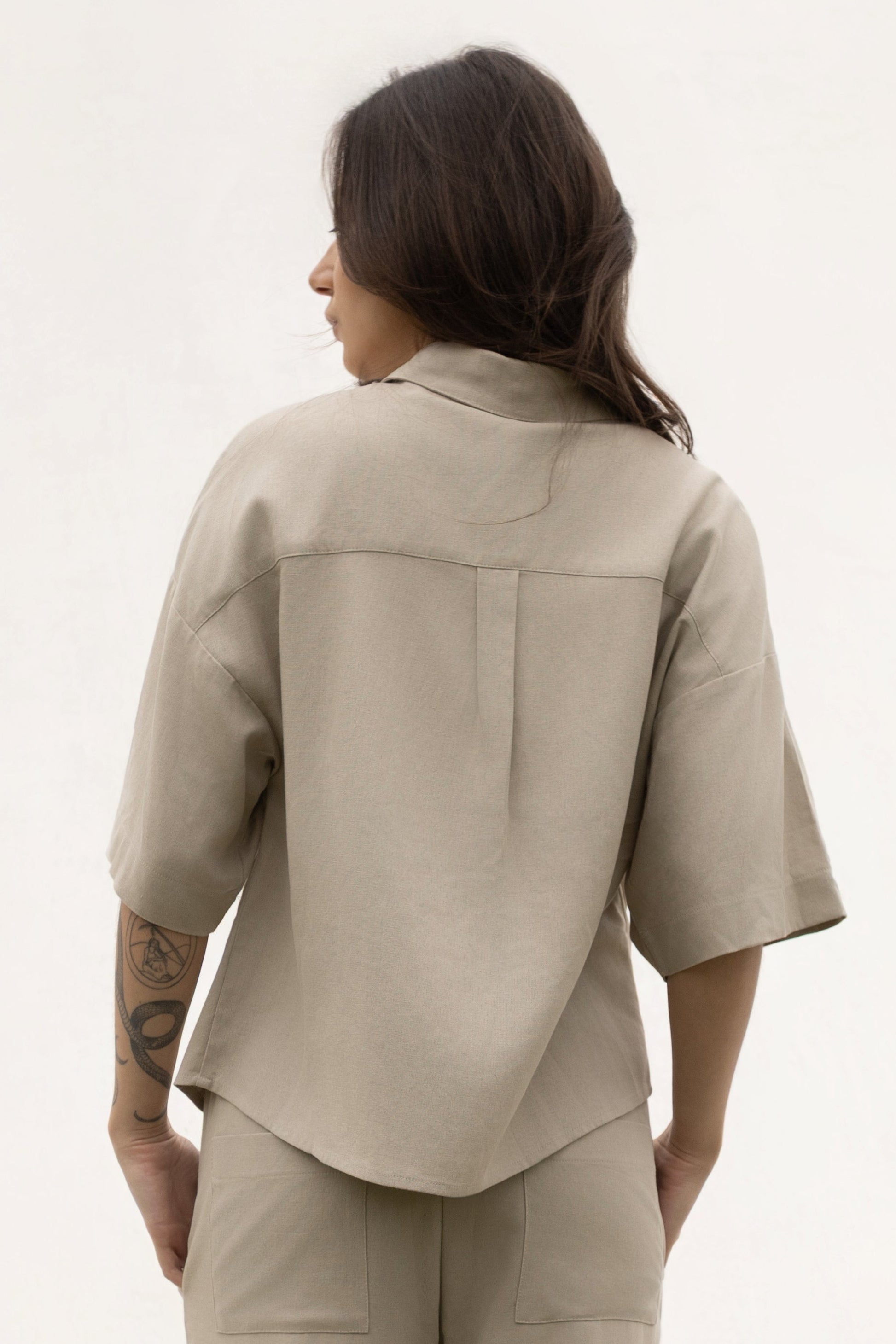 Elegante na medida. Confeccionada em tecido macio de linho misto, a Camisa Luara possui shape levemente amplo, com comprimento médio, mangas curtas, bolso unitário e prega nas costas. Vai da praia ao casual, dependendo da proposta desejada e forma um lindo conjunto com a nossa Calça Paula.