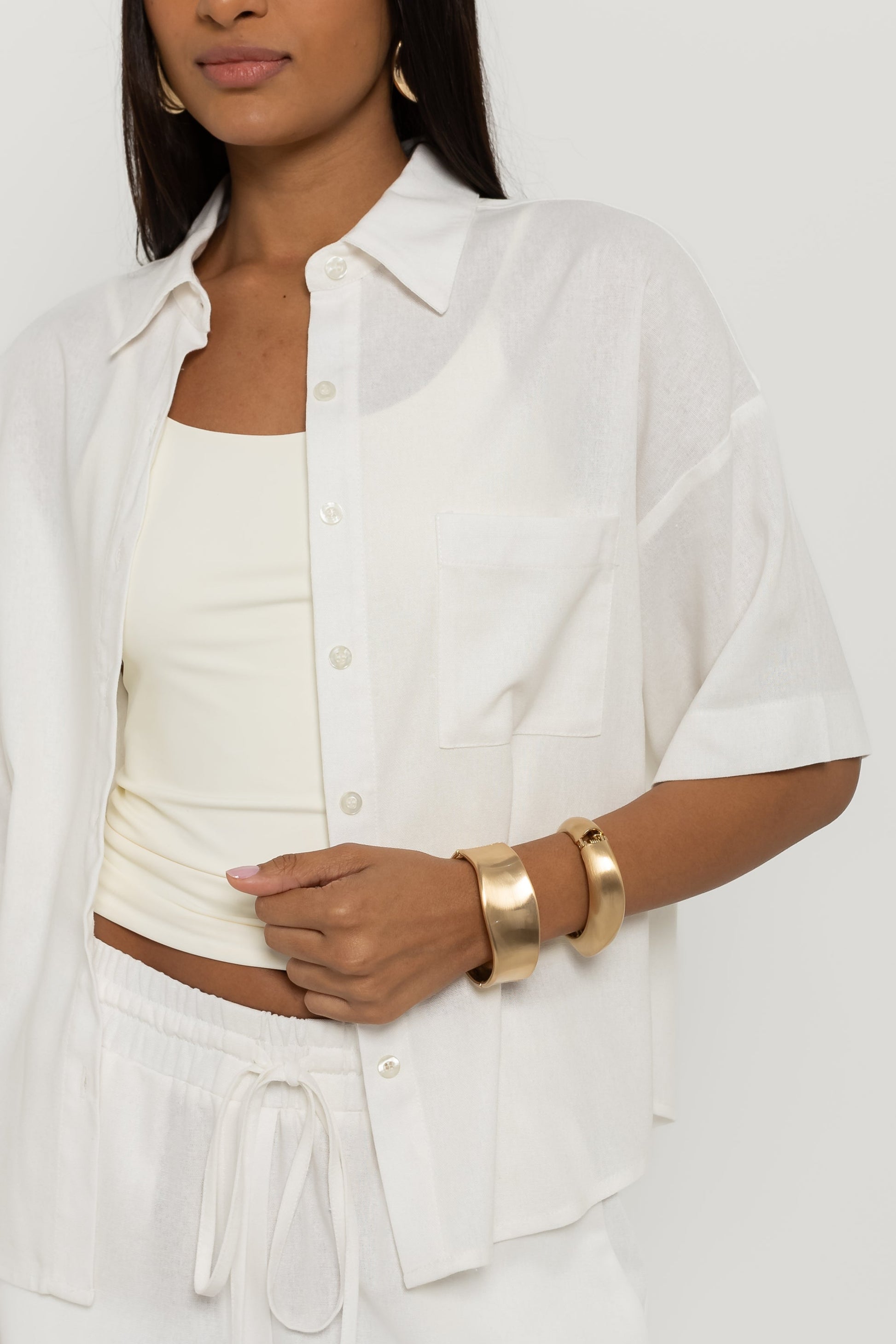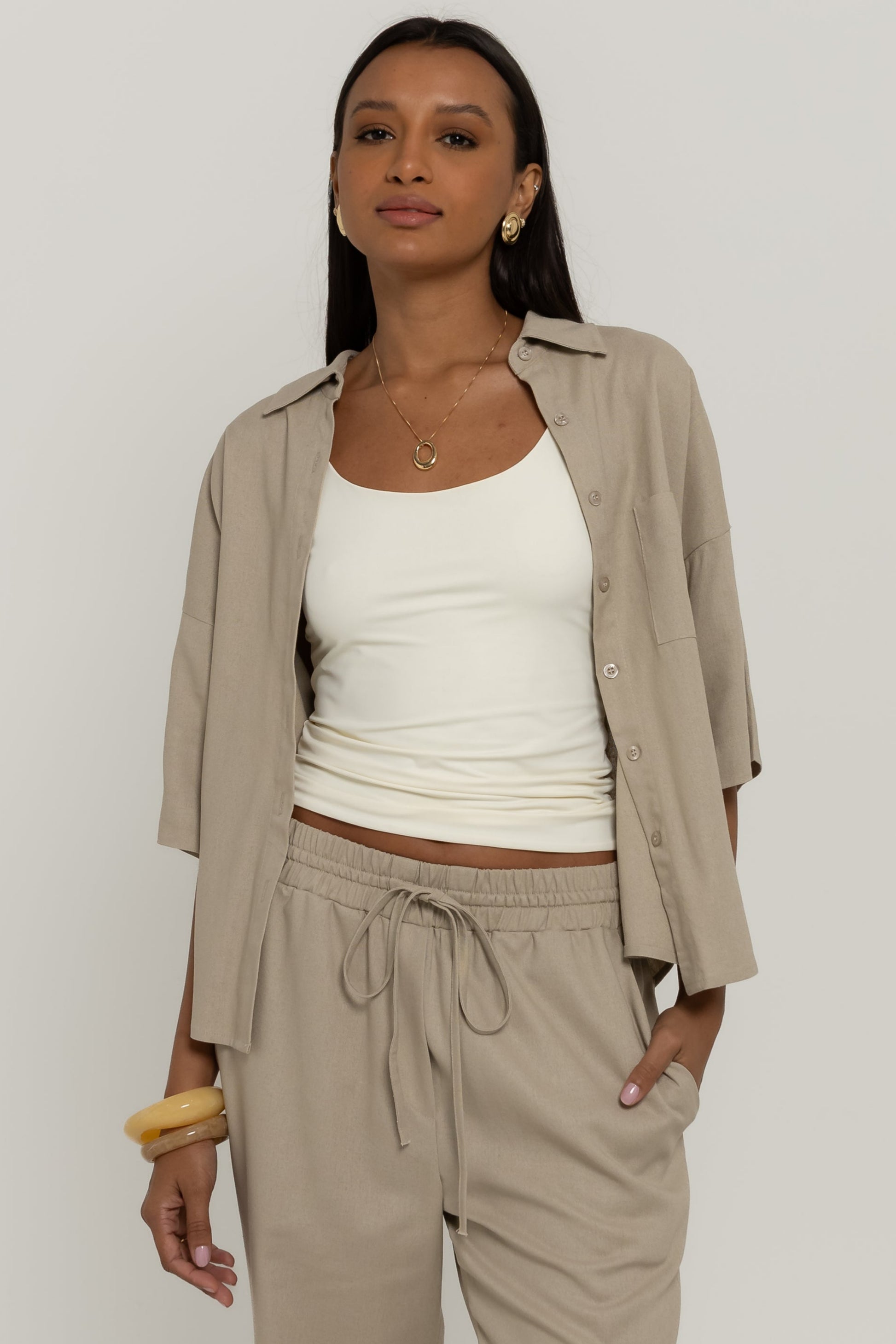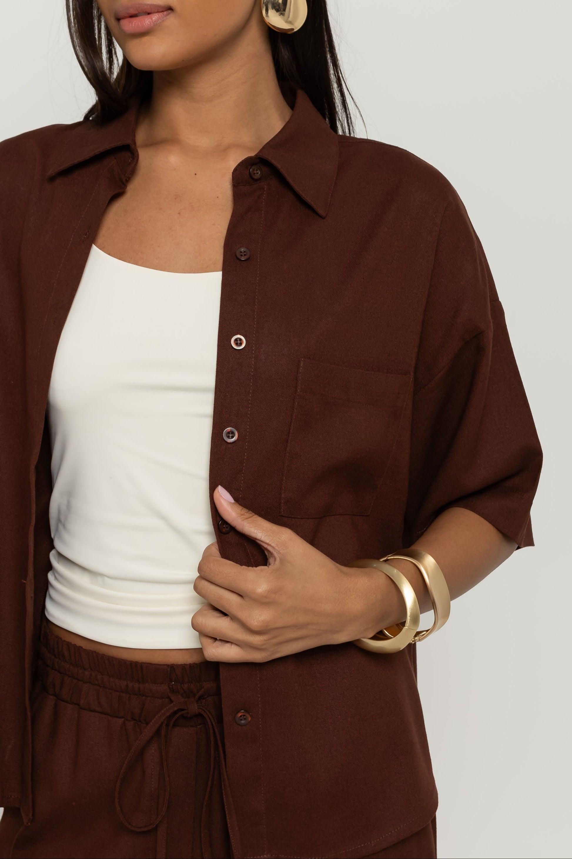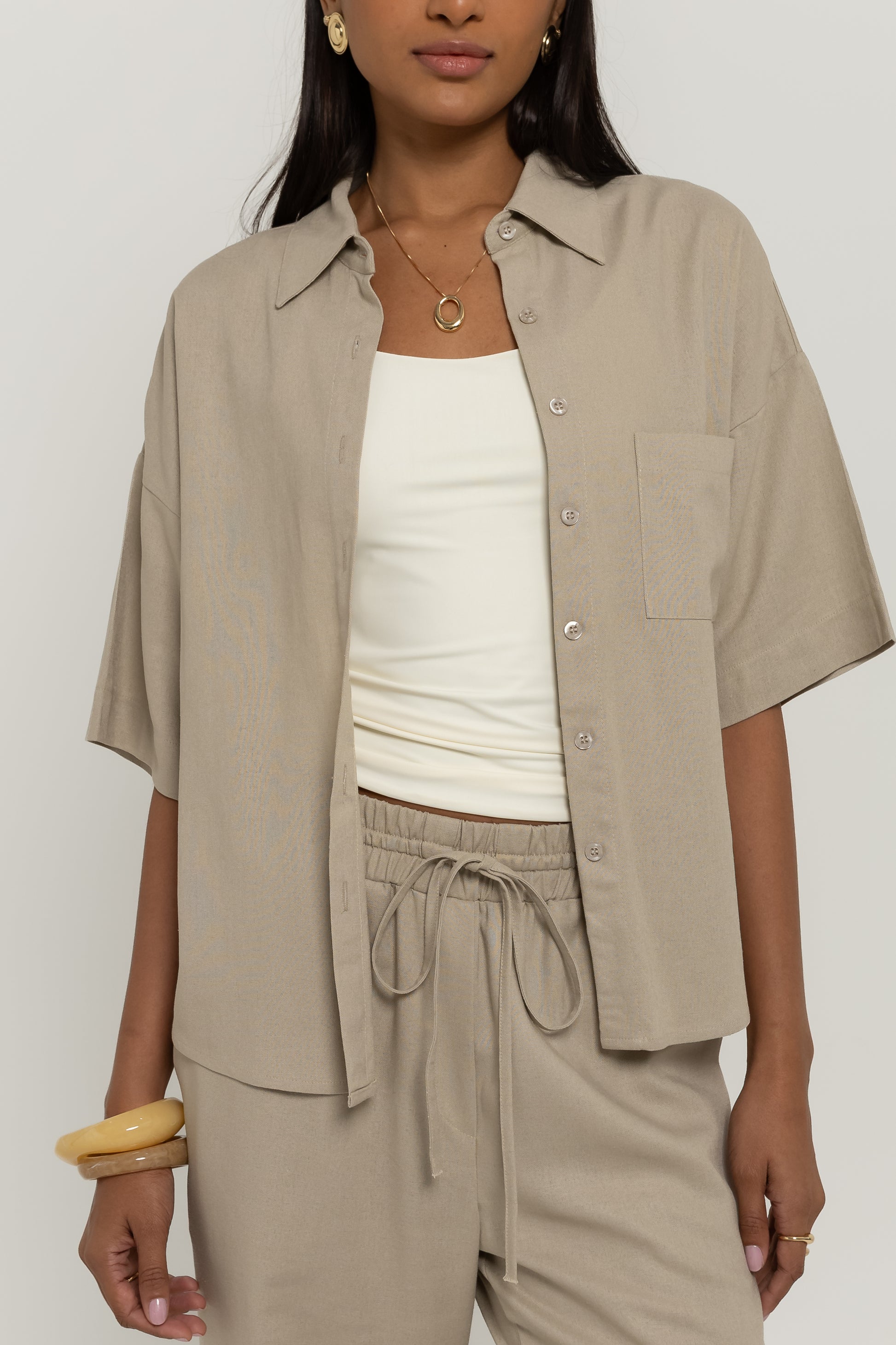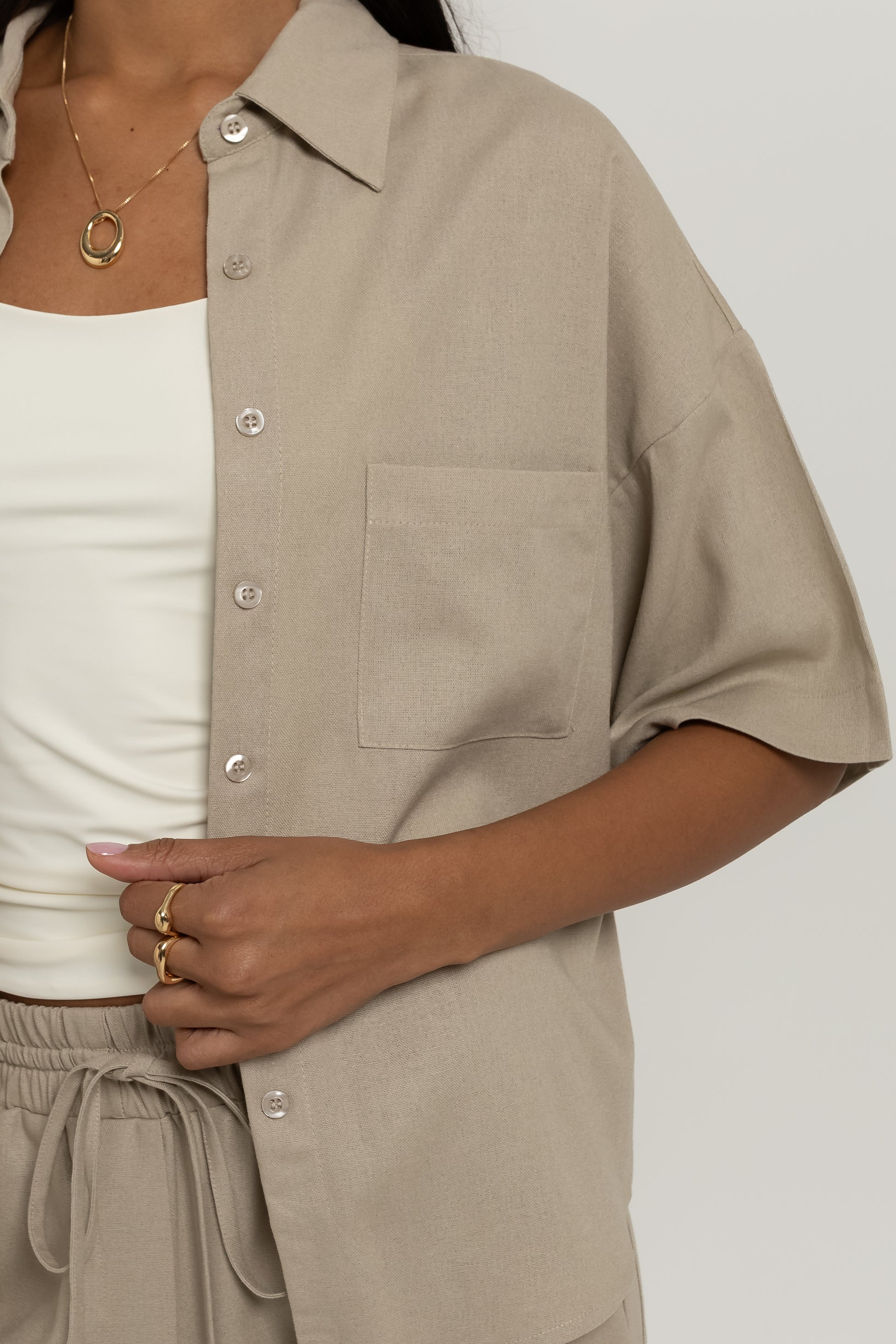 Elegante na medida. Confeccionada em tecido macio de linho misto, a Camisa Luara possui shape levemente amplo, com comprimento médio, mangas curtas, bolso unitário e prega nas costas. Vai da praia ao casual, dependendo da proposta desejada e forma um lindo conjunto com a nossa Calça Paula.
