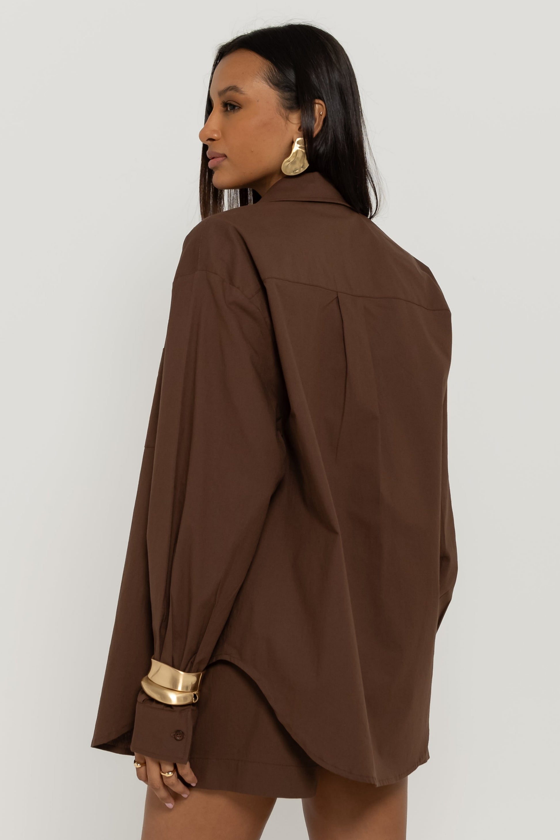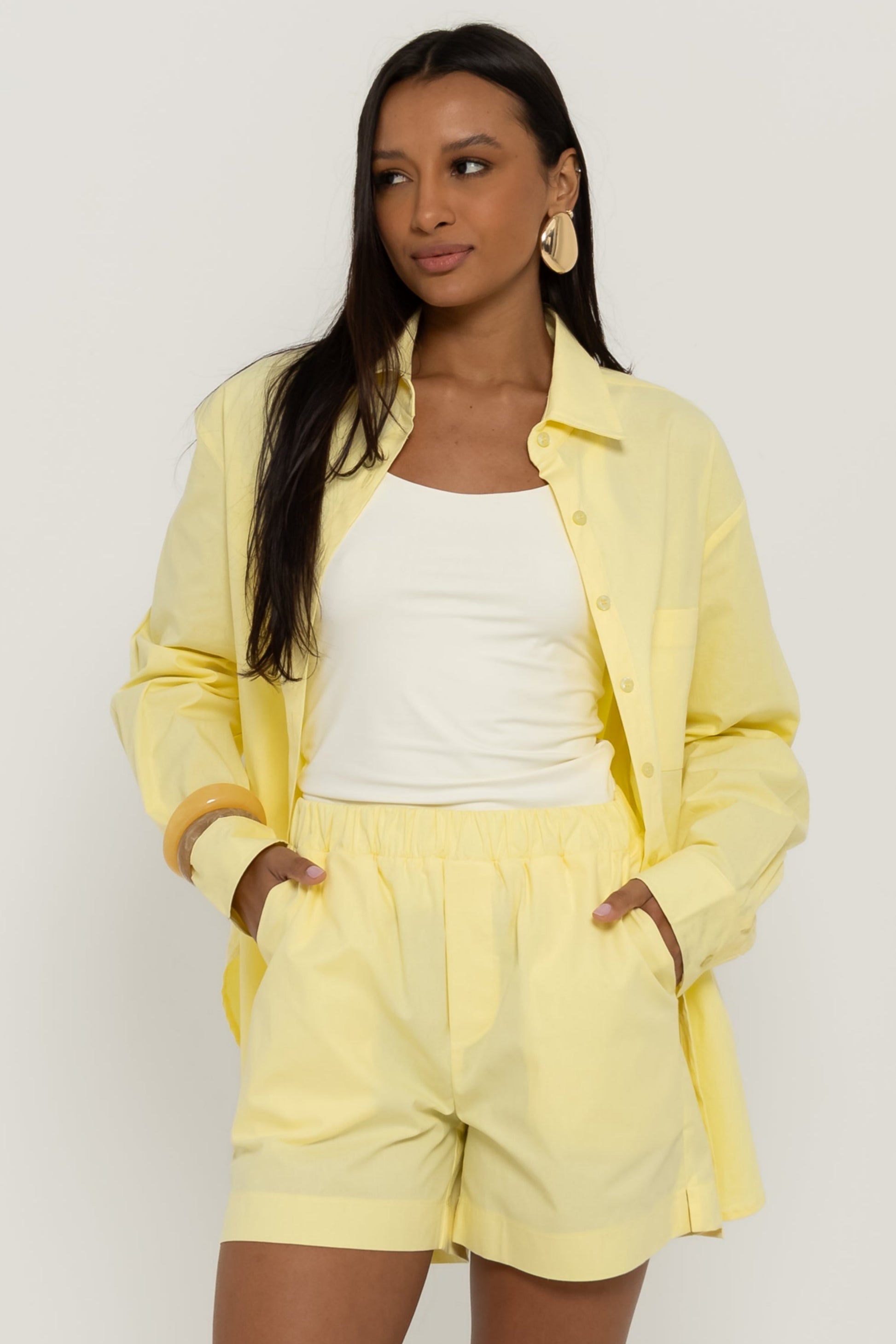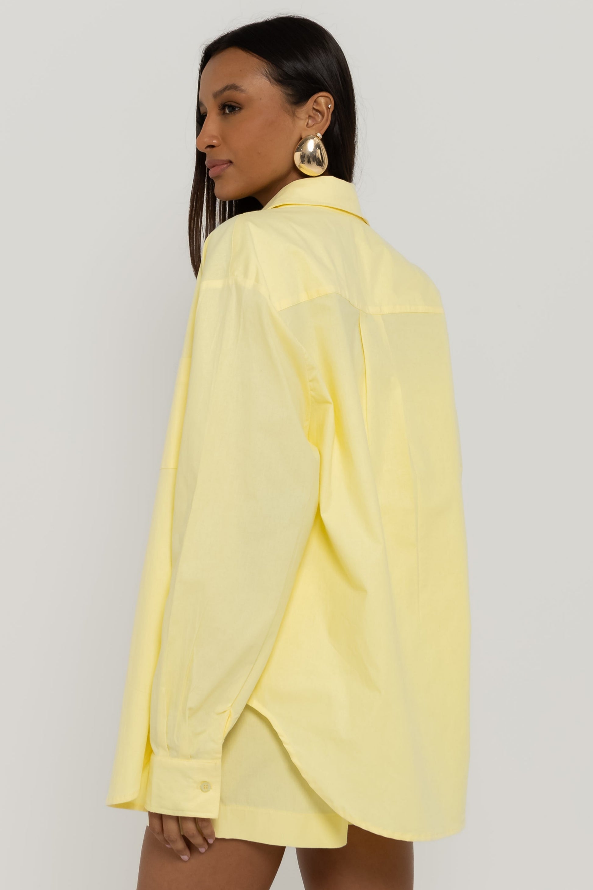 Para elevar o nível das suas produções de primavera verão! Confeccionada em tecido de tricoline levemente estruturado e de toque macio, a Camisa Malu possui shape oversized, mangas longas com pregas e detalhe de botão, bolso unitário, barra fraldada e prega nas costas que acrescenta um toque de elegância e modernidade. Componha com o Shorts Sarina para formar um lindo conjunto, ou desmembrando as peças para compor com as outras peças do seu armário no dia a dia.
