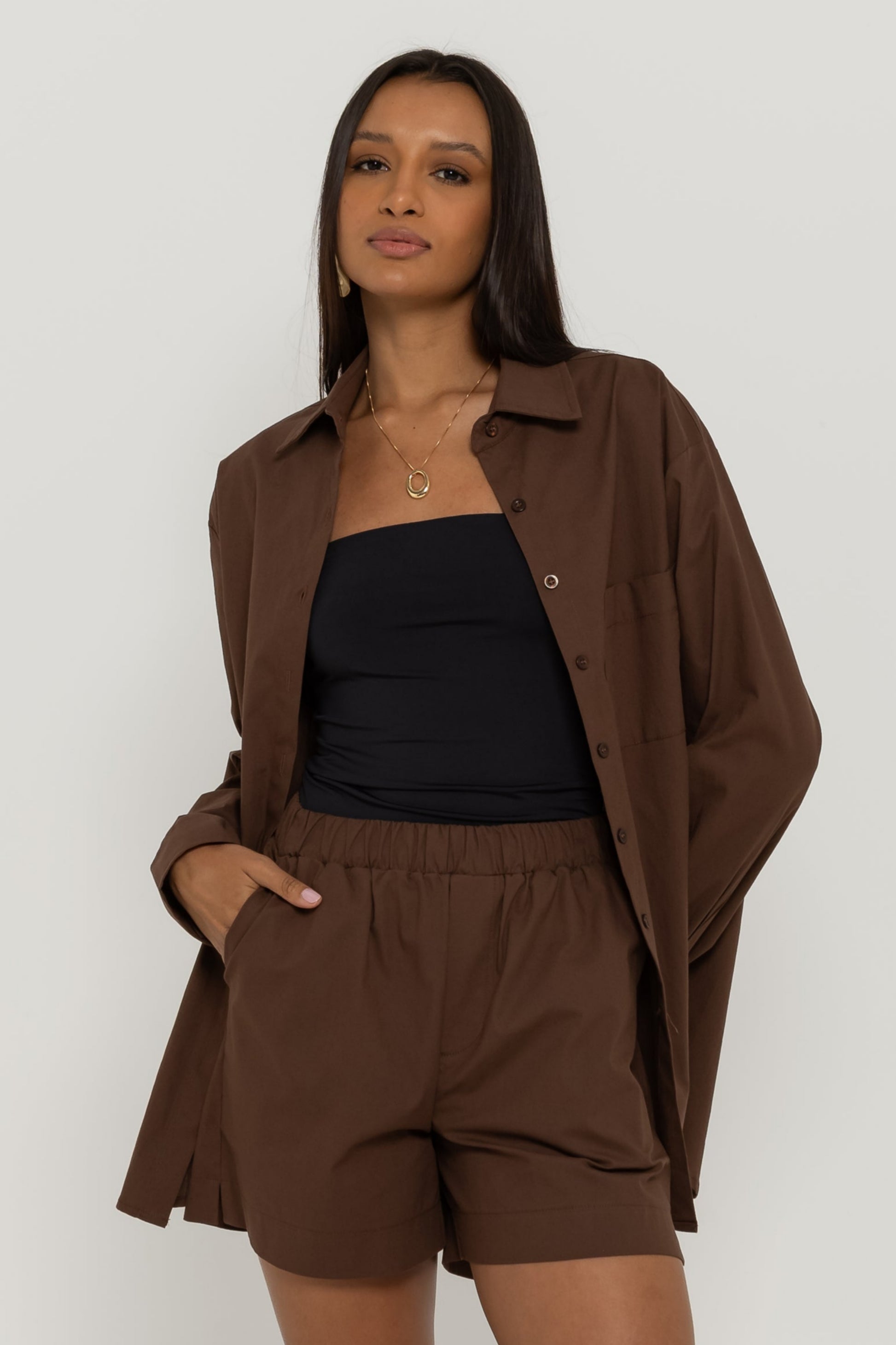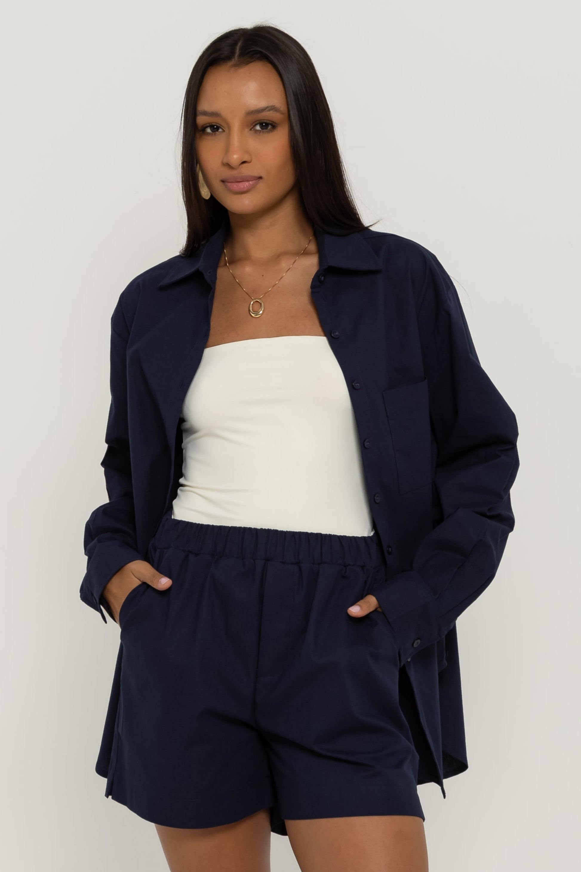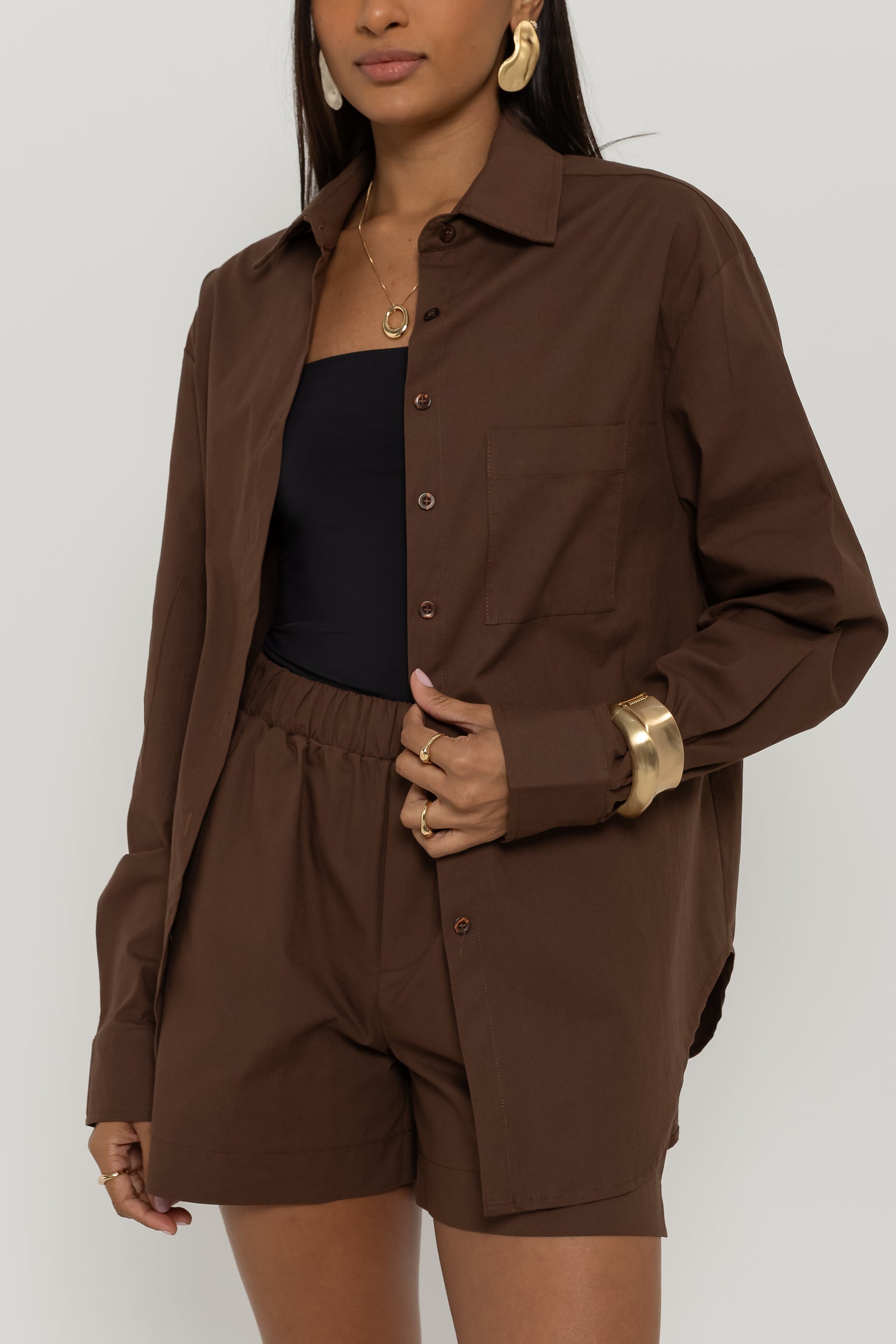 Para elevar o nível das suas produções de primavera verão! Confeccionada em tecido de tricoline levemente estruturado e de toque macio, a Camisa Malu possui shape oversized, mangas longas com pregas e detalhe de botão, bolso unitário, barra fraldada e prega nas costas que acrescenta um toque de elegância e modernidade. Componha com o Shorts Sarina para formar um lindo conjunto, ou desmembrando as peças para compor com as outras peças do seu armário no dia a dia.