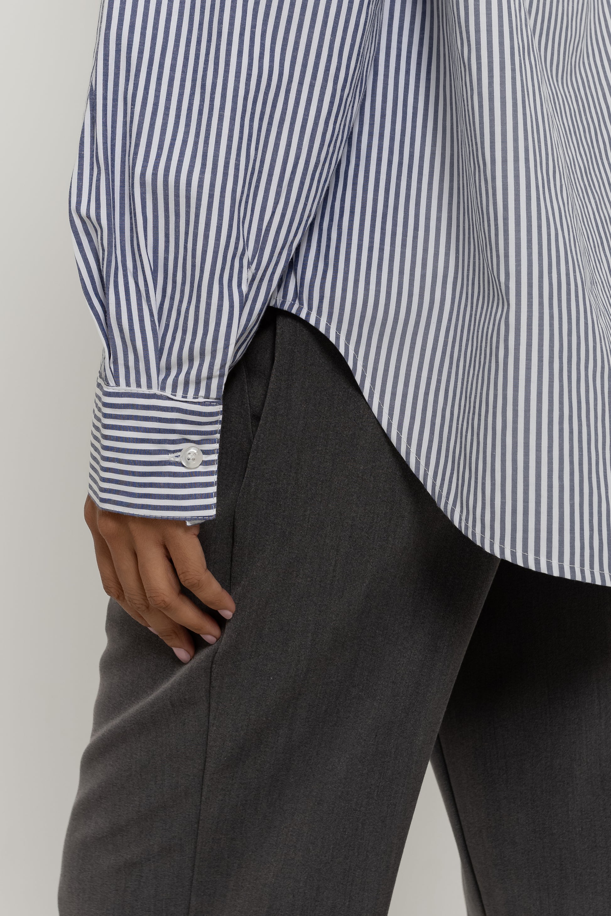 Camisa listrada é um item indispensável no armário. Feita em tecido de tricoline, a Camisa Willow possui shape oversized, com barra fraldada e prega nas costas. Ideal para montar, desde office looks, até compor visuais mais casuais e despojados.