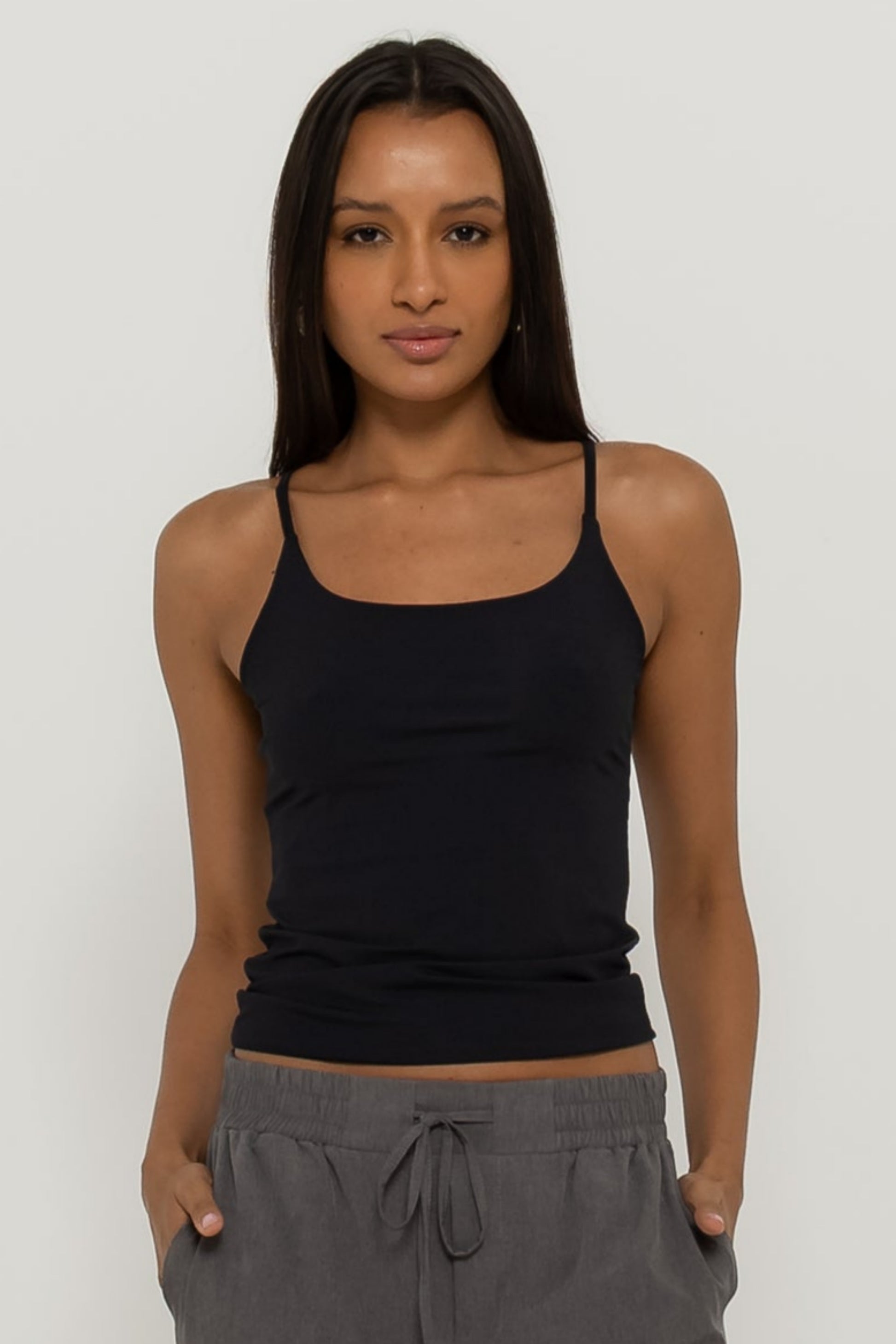 Da série: básicos que não tem erro! A Regata Bali é feita em malha macia de poliamida, possui shape ajustado ao corpo, decote na medida certa e alças finas, além de ser inteiramente dupla, ajudando na sustentação e evitando que fique transparente! Ideal para usar com sobreposições ou sozinha mesmo como protagonista do look!