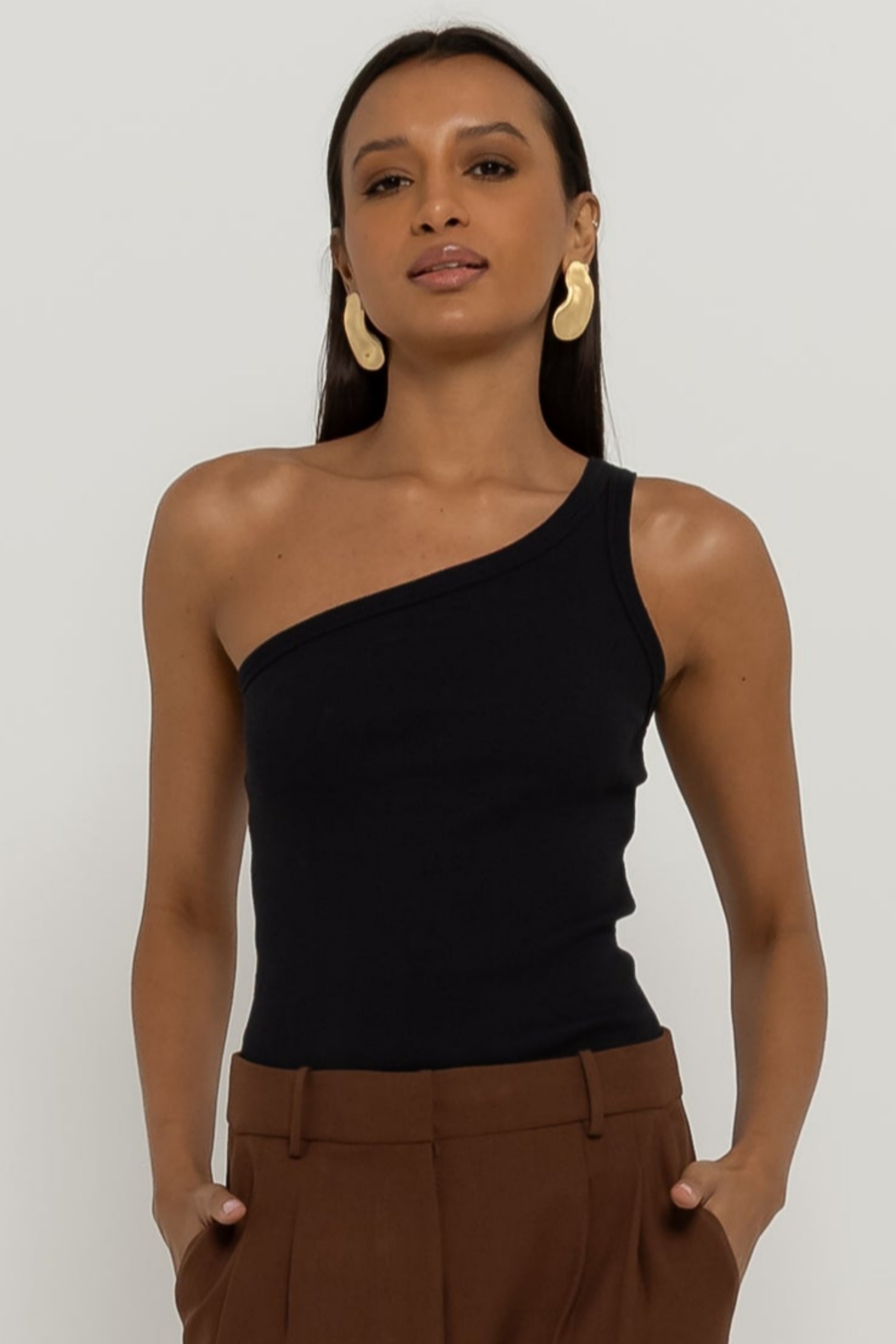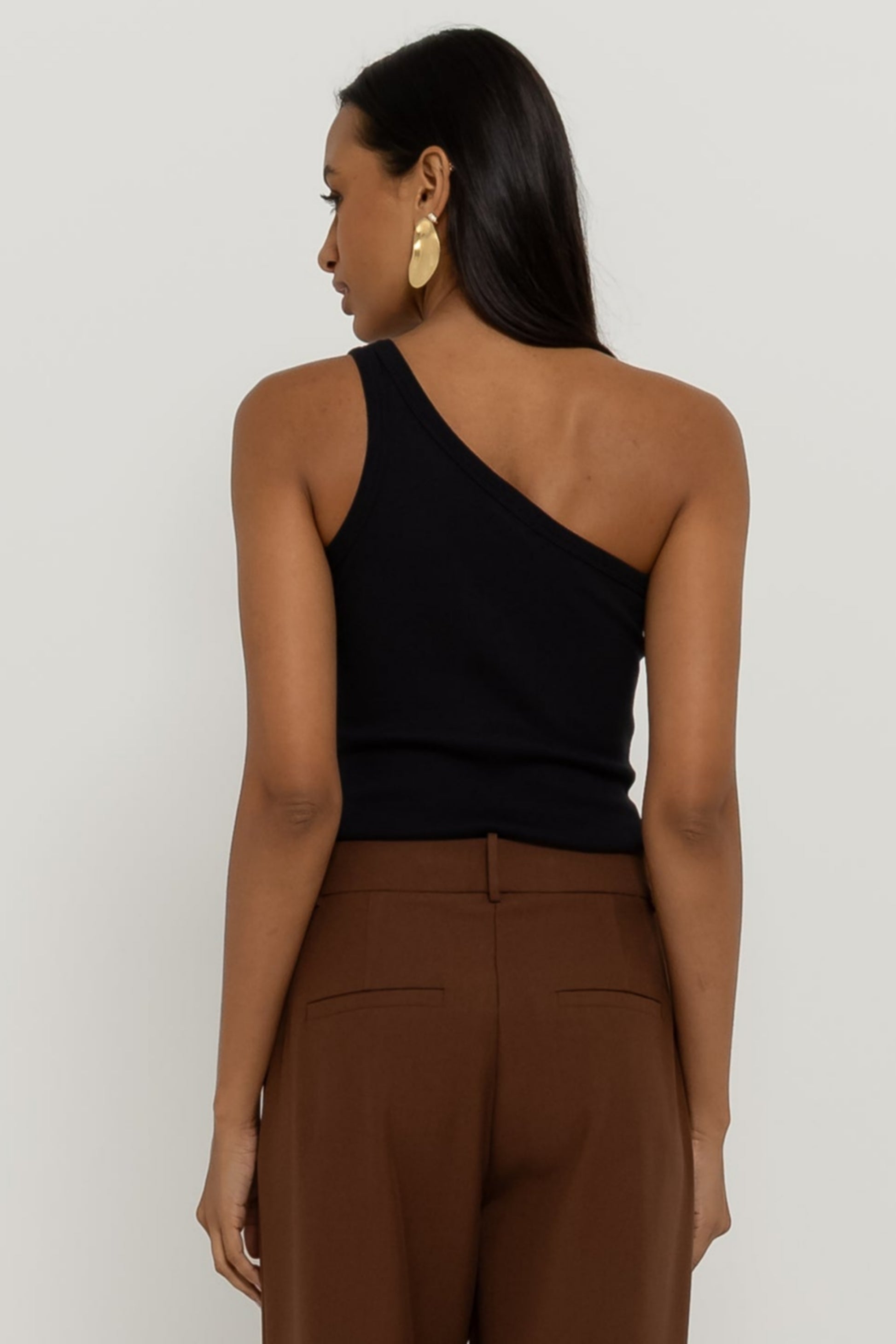 Descubra a regata Mia, uma peça que combina elegância e conforto em um design sofisticado. Com seu decote único e modelagem de um ombro só, esta regata é ideal para compor looks que vão do casual ao mais refinado. O tecido, predominantemente de algodão, proporciona uma sensação agradável ao toque, enquanto a adição de elastano garante flexibilidade e sustentação, tornando-a perfeita para o uso diário.