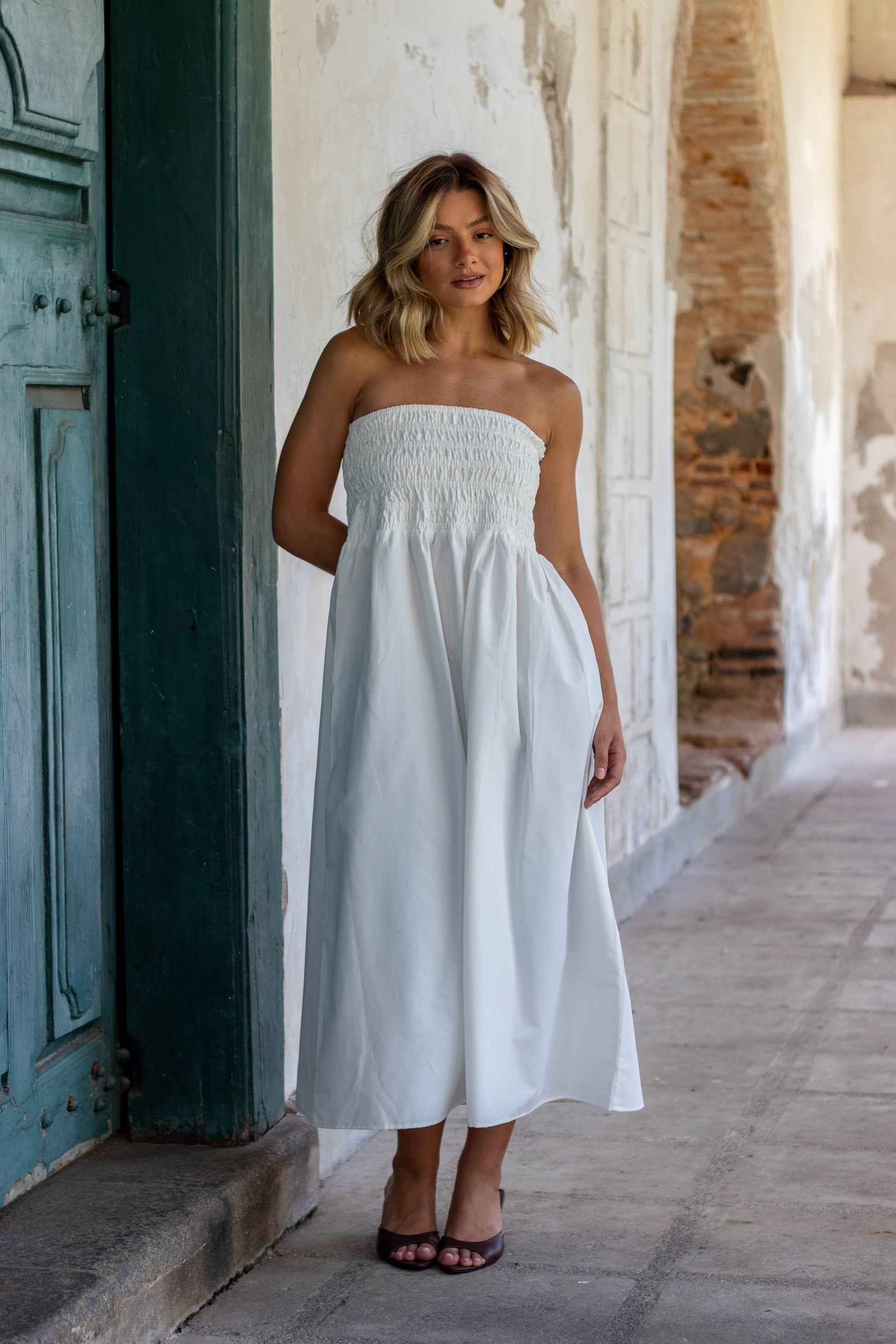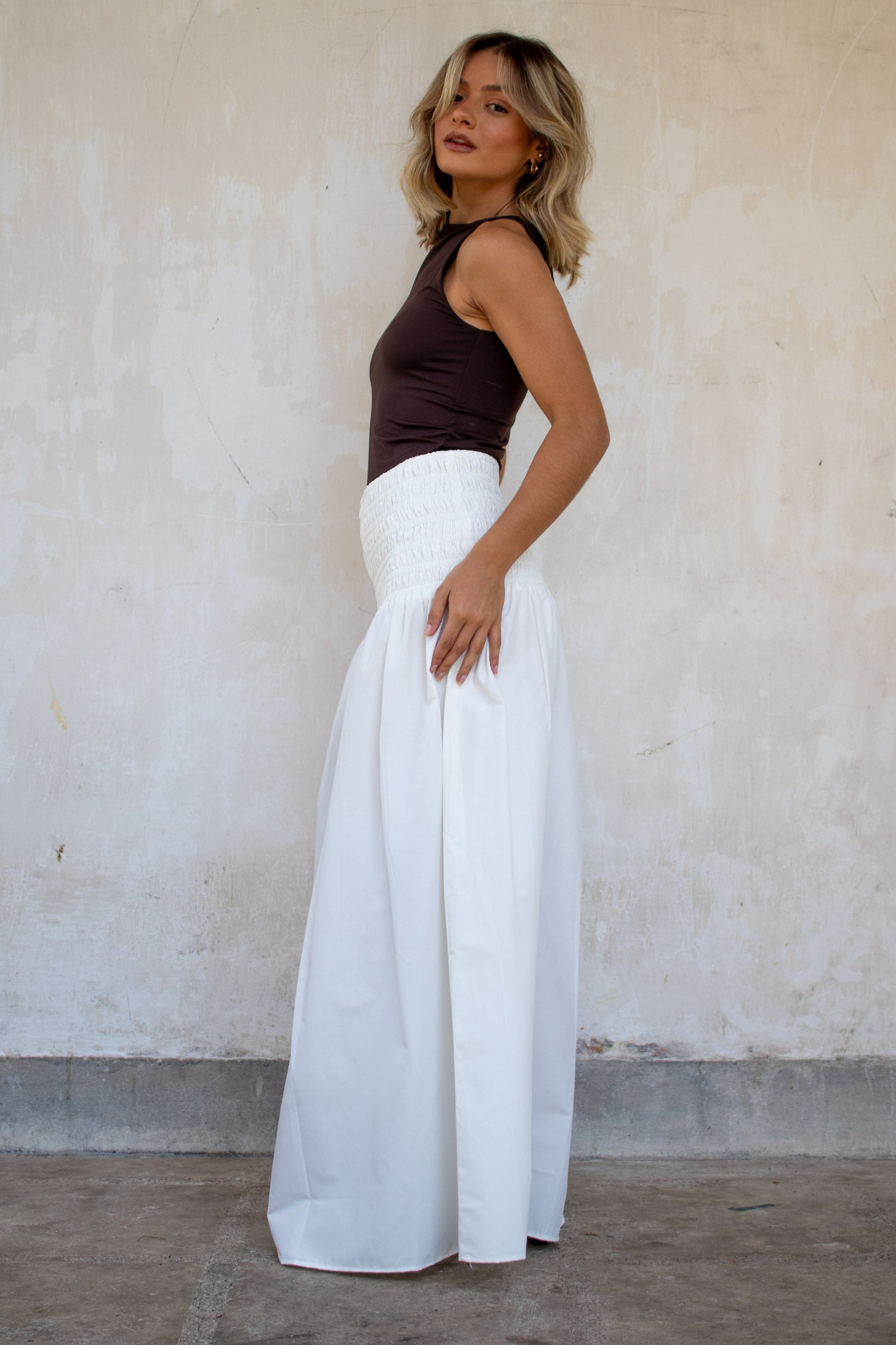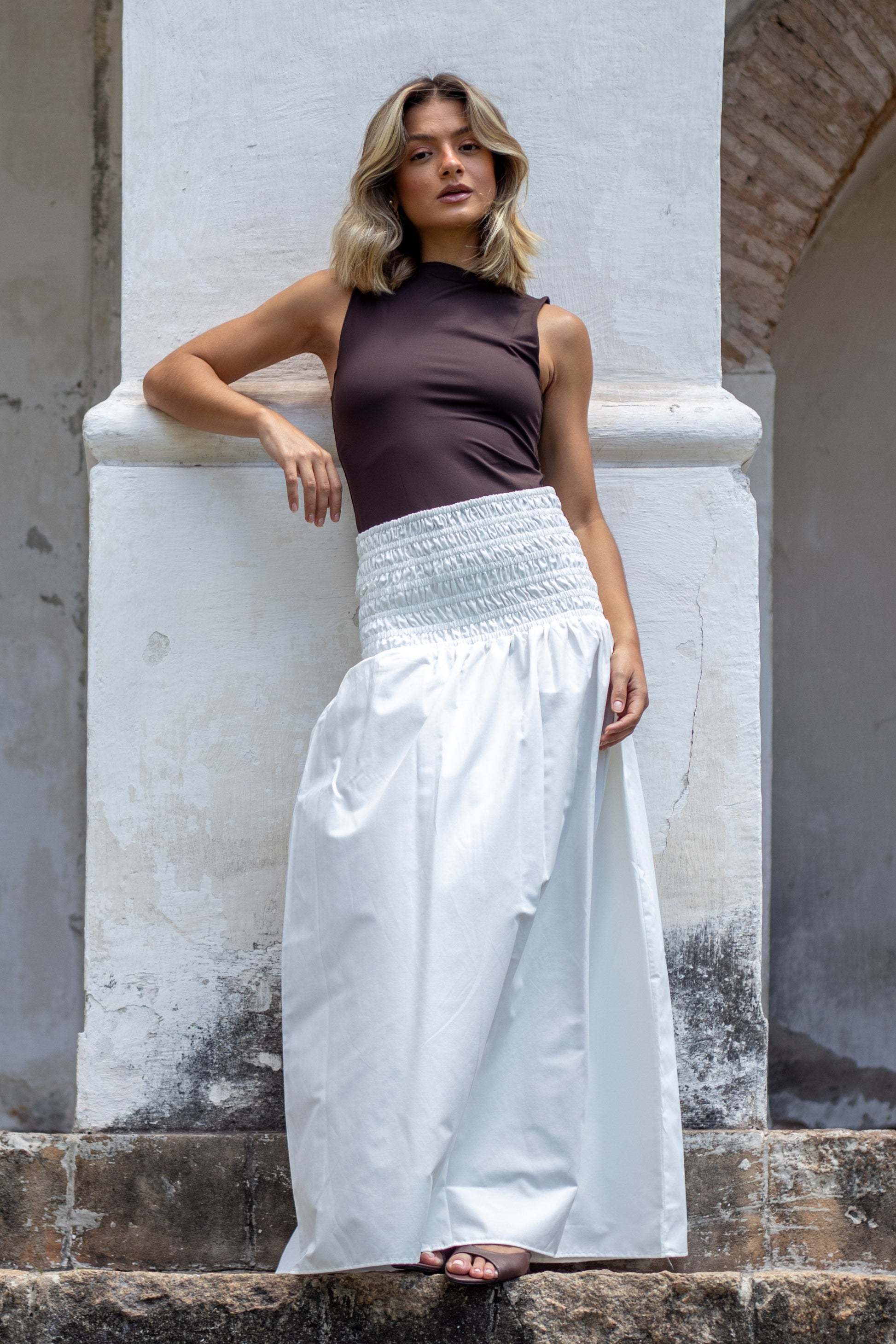 As saias brancas conquistaram de vez o coração das fashionistas europeias, e a Saia Valentine promete ser a peça mais versátil do seu armário. Confeccionada em tricoline macio e estruturado, ela possui um shape alongado e amplo, com detalhe de lastex na cintura, que se estende até o quadril, possibilitando o uso da peça tanto como cintura alta, quanto como cintura média/ baixa, além de ajudar a alongar a silhueta. E o melhor: ainda pode ser usada como vestido. Quer mais versatilidade do que isso?